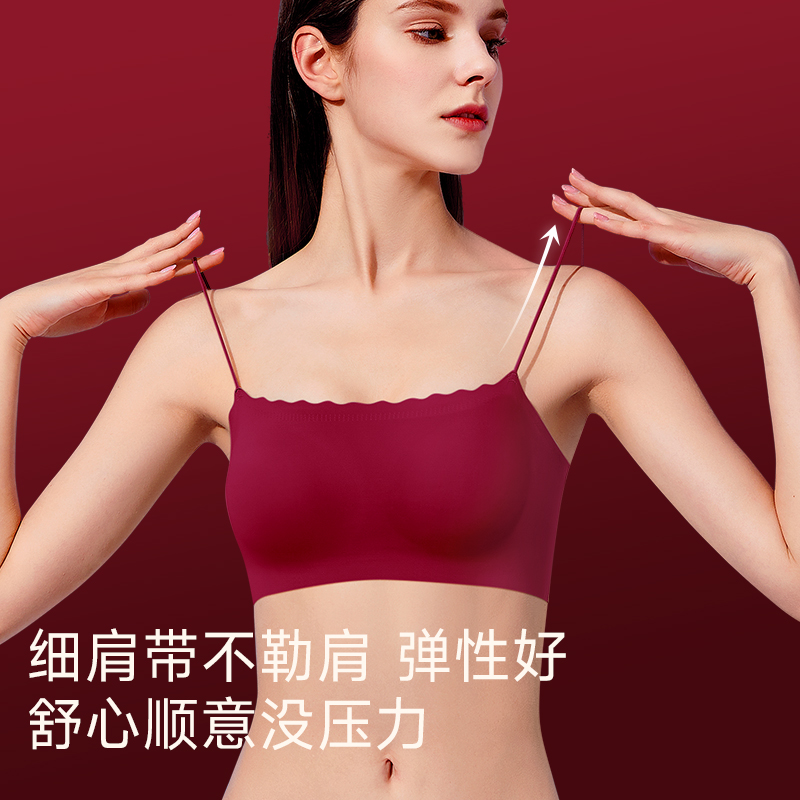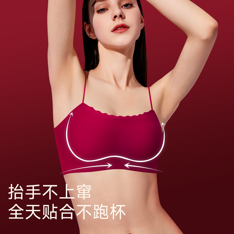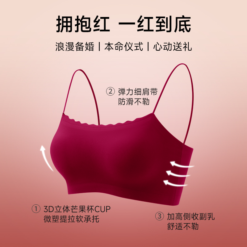 红色内衣内裤女套装结婚新娘安可拉红聚拢细肩带抹胸新款爆款胸罩