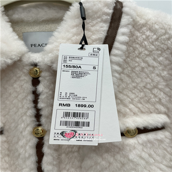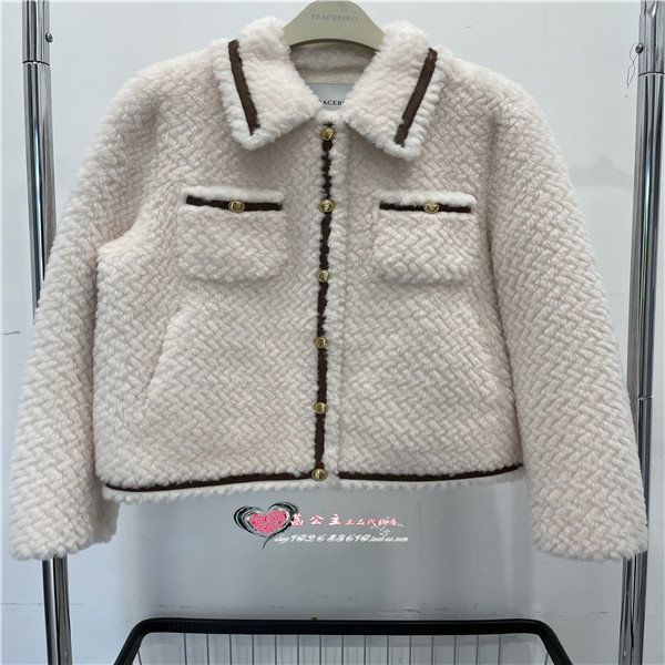 A1ADD4420太平鸟女装2023冬专柜正品翻领撞边皮草外套A1ADD442082