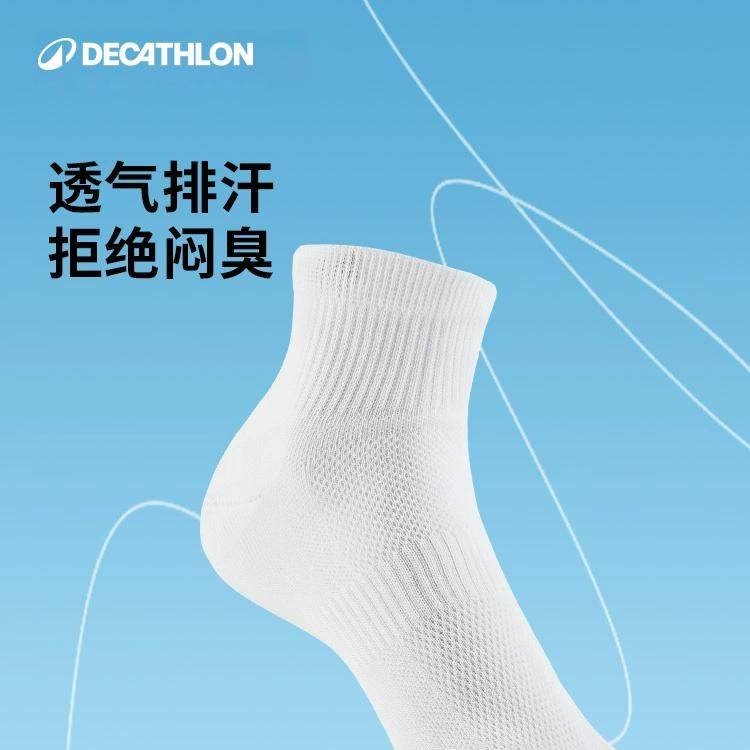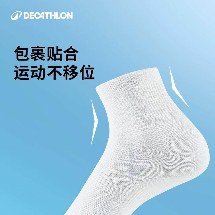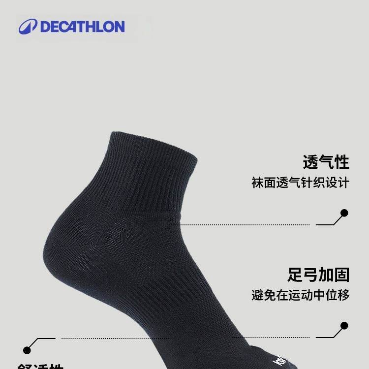 迪卡侬跑步袜男袜吸汗透气速干中筒薄款袜子运动袜短袜3双装OVA1