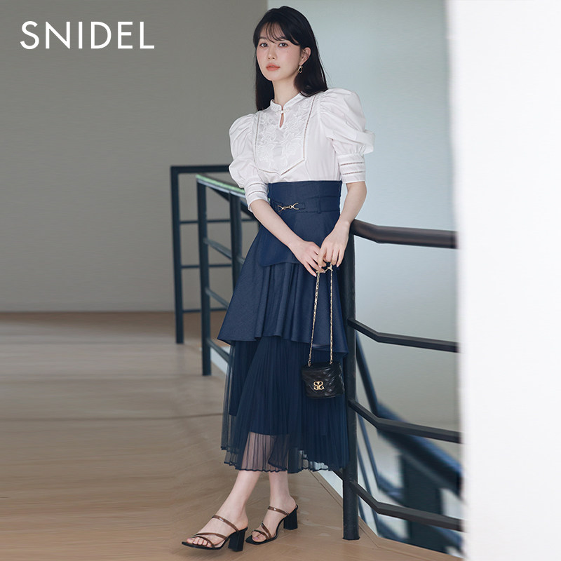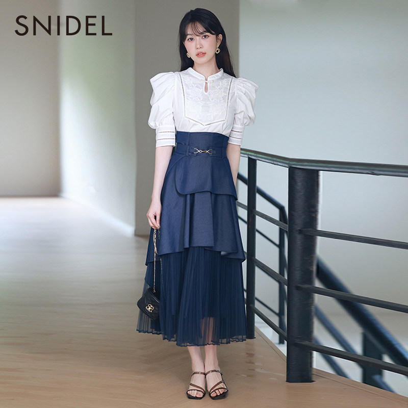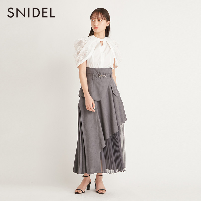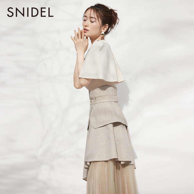 SNIDEL春夏款优雅高腰不规则百褶拼接雪纺半身裙SWFS232121