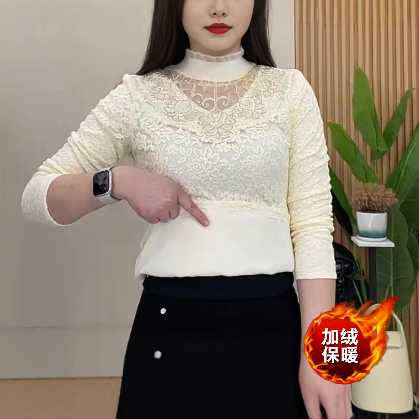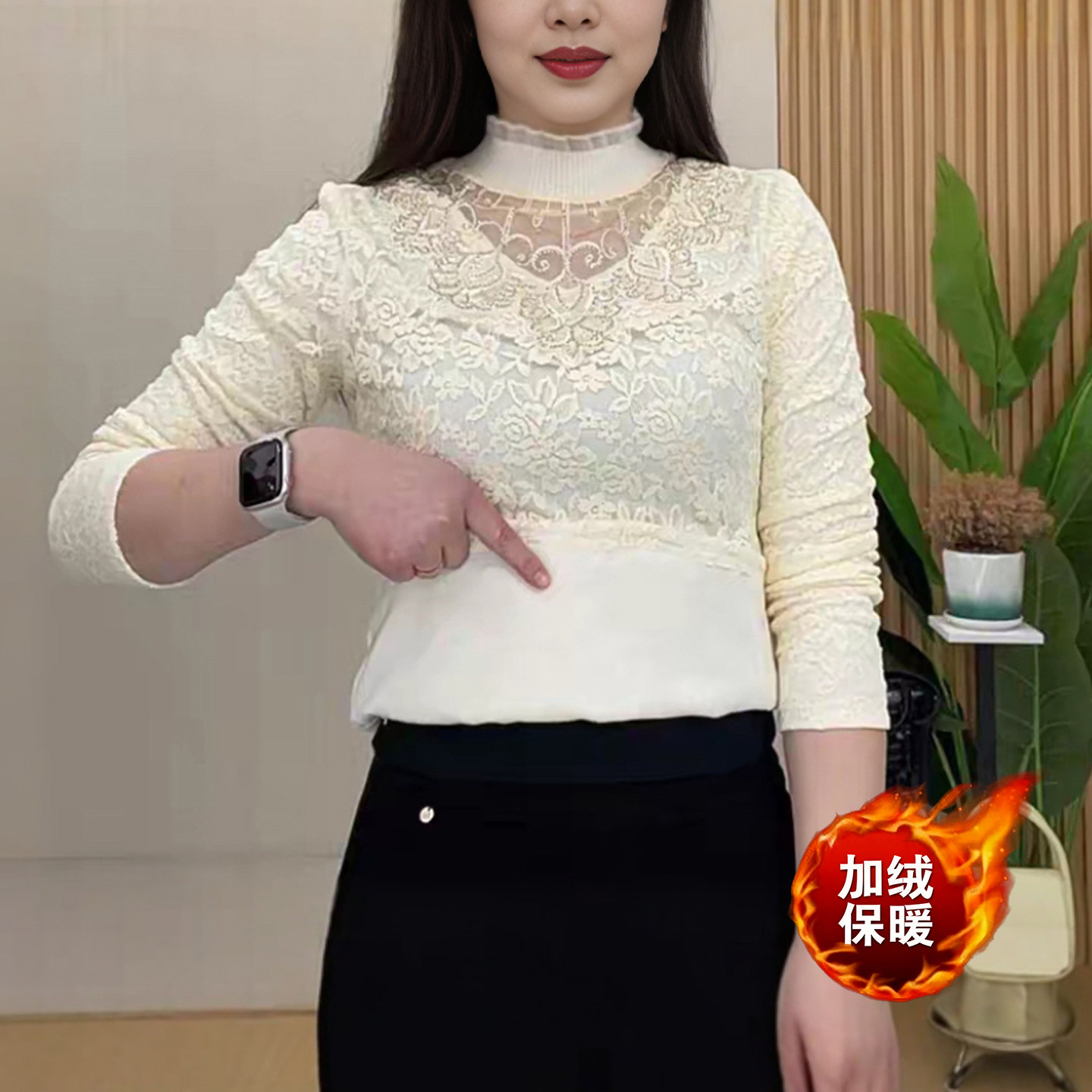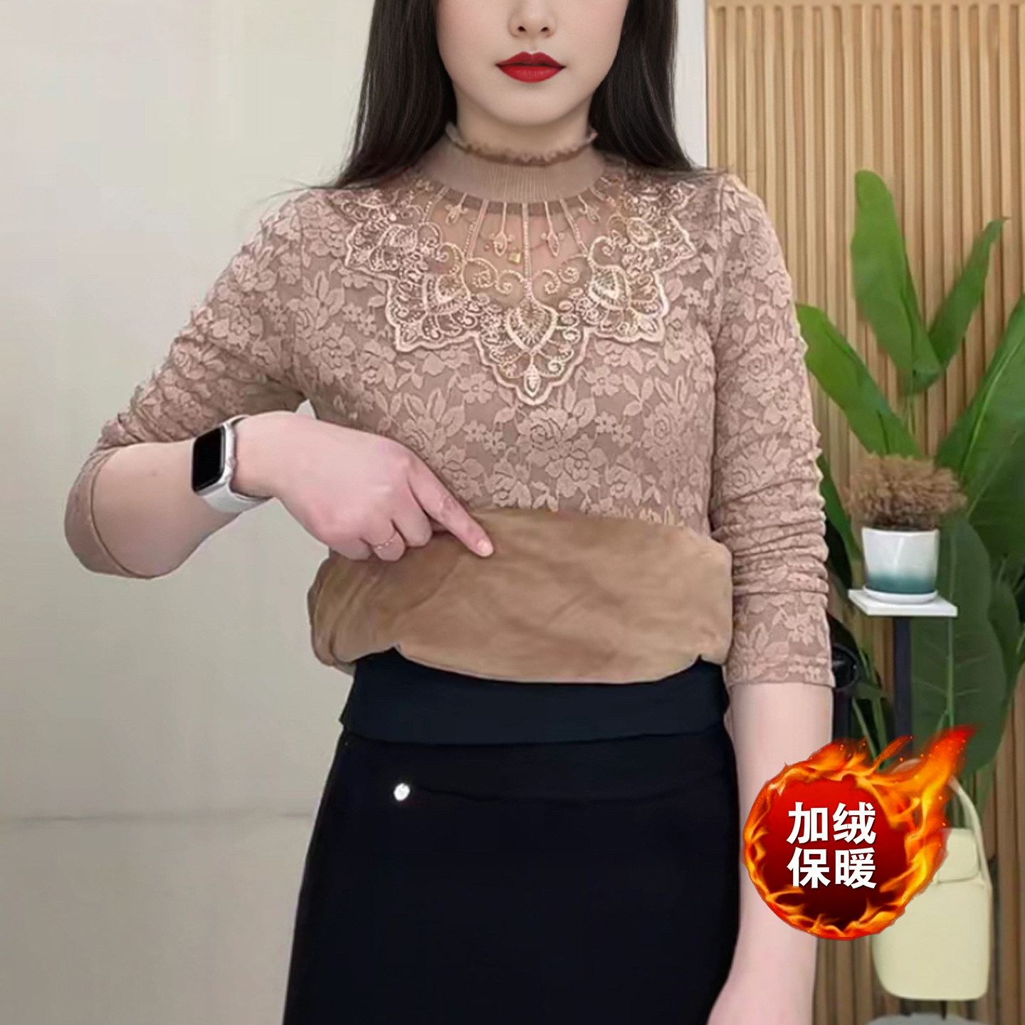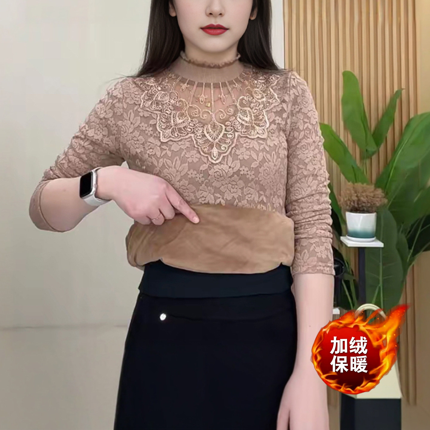 蕾丝加绒打底衫加绒小衫妈妈装