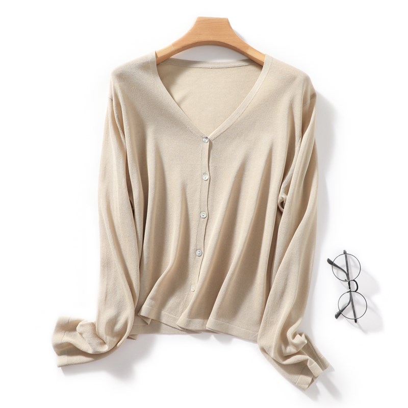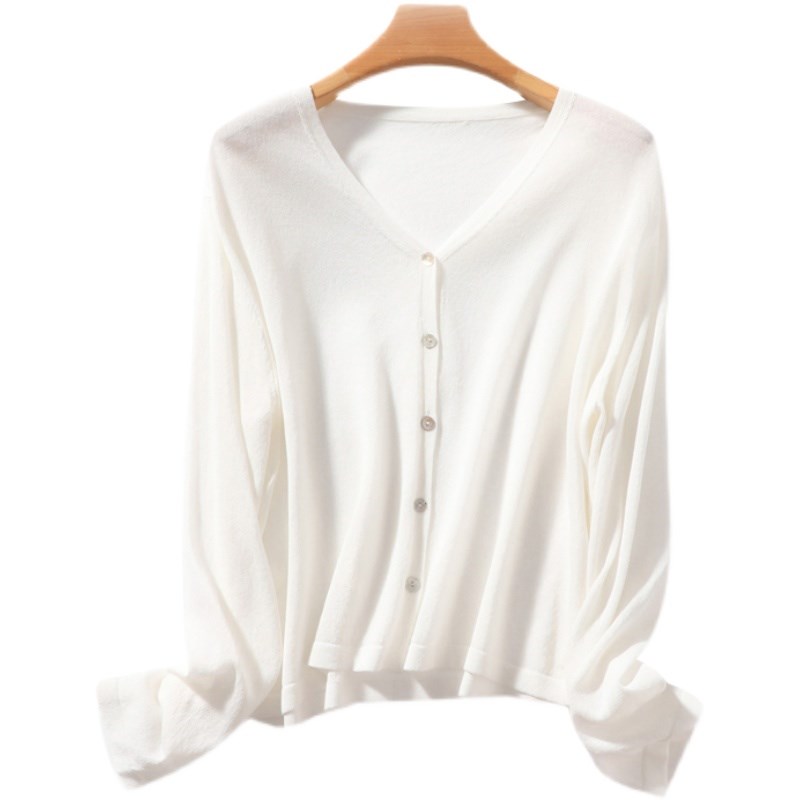 会呼吸!夏季半透明薄款 V领苎麻针织衫开衫防晒衫上衣女 空调衫