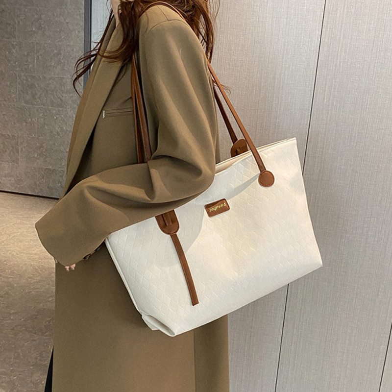 大容量包包女秋冬2024新款压痕复古撞色单肩高级感小众手提托特包