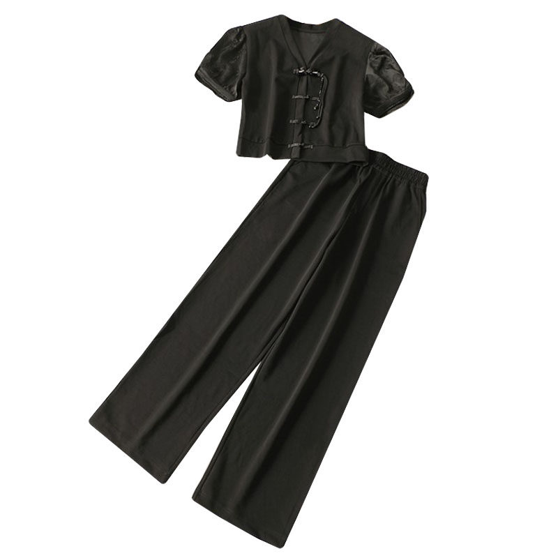 245979 夏上衣裤子套装 女长款短袖V领现货