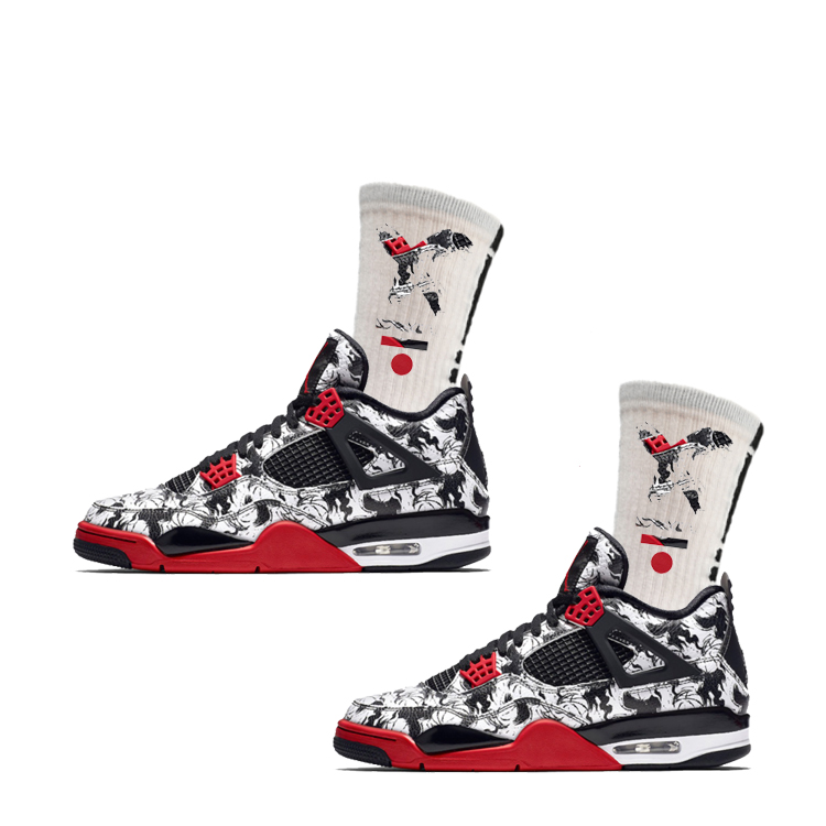 AJ4篮球运动袜子红蓝鸳鸯球鞋配袜飞人4代白灰熔岩黑红色中筒紫绿
