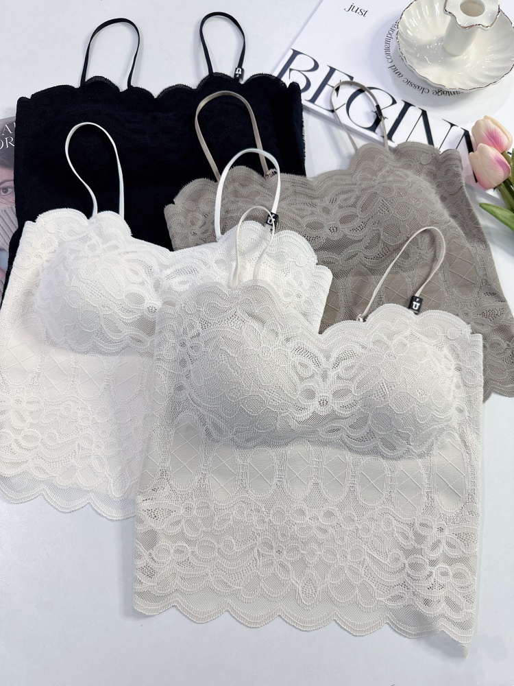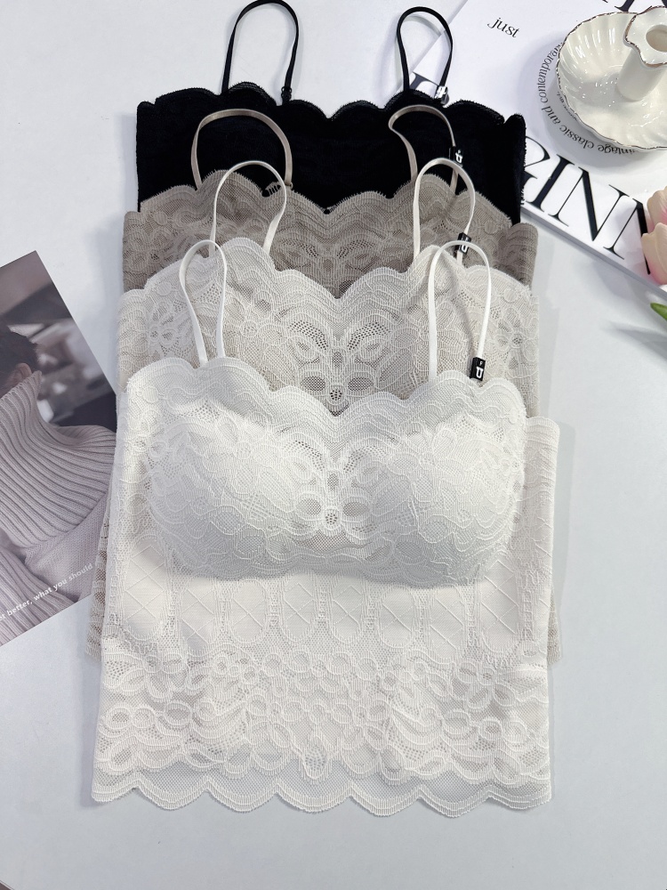 2024年夏季新款法式蕾丝小吊带背心带胸垫聚拢显腰线西装内搭打底