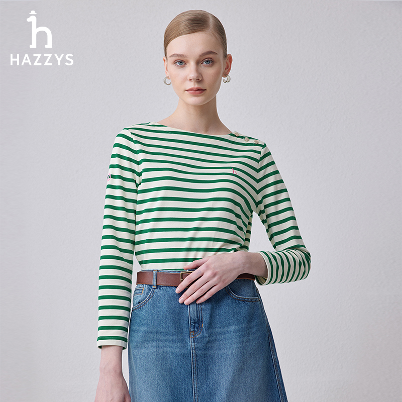 【商场同款】哈吉斯hazzys官方正品长袖条纹T恤女士春季新款纯棉