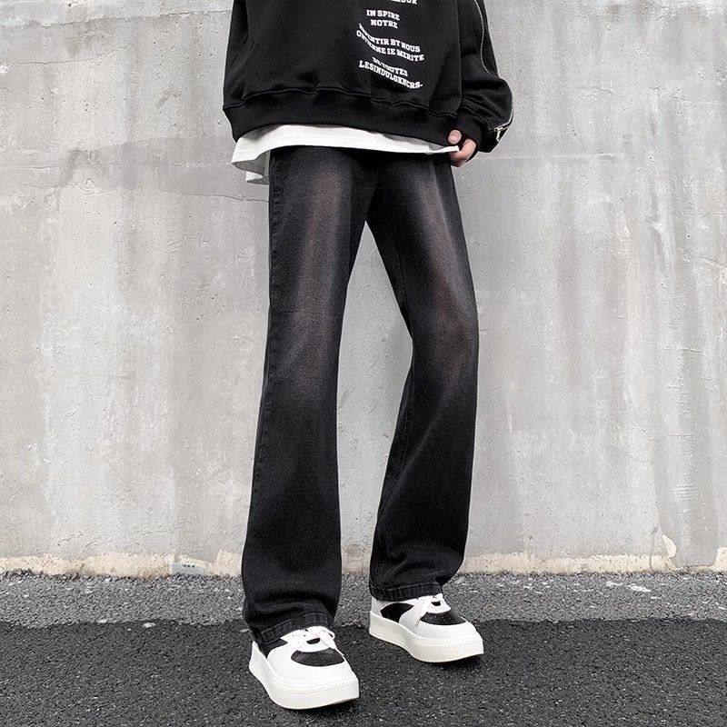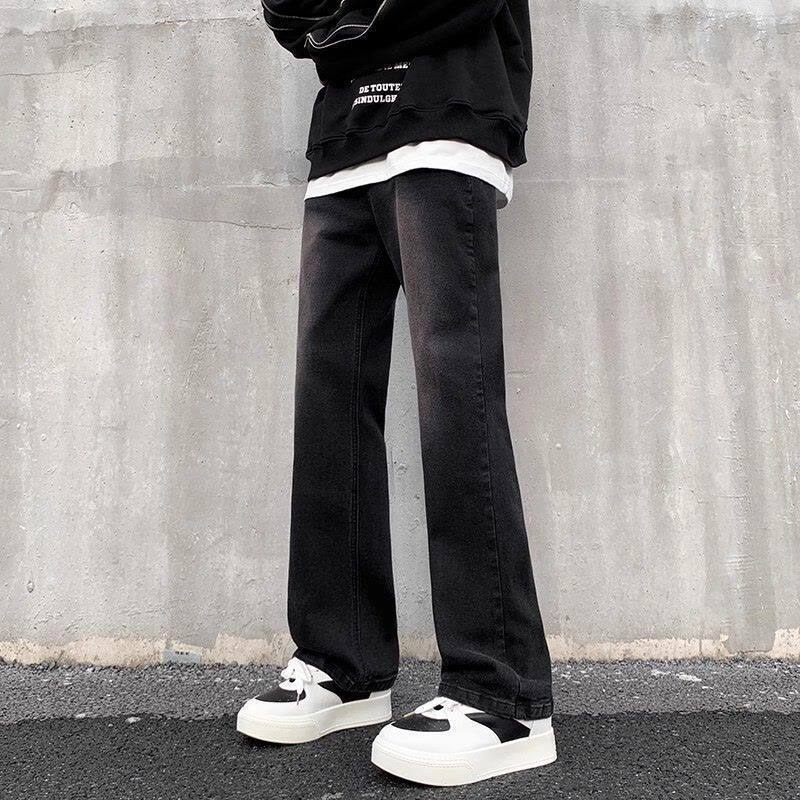 黑色渐变微喇牛仔裤男女夏季美式复古高街vibe直筒修身童装长裤子