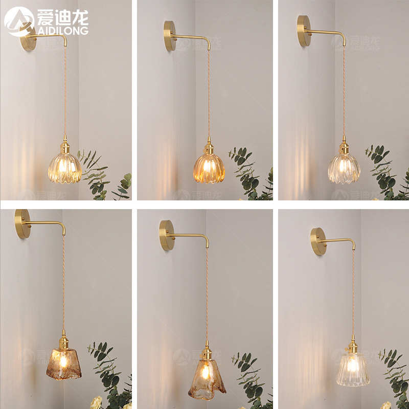 日式复古简约黄铜壁灯现代北欧床头壁灯阳台卫生间浴室镜镜前灯