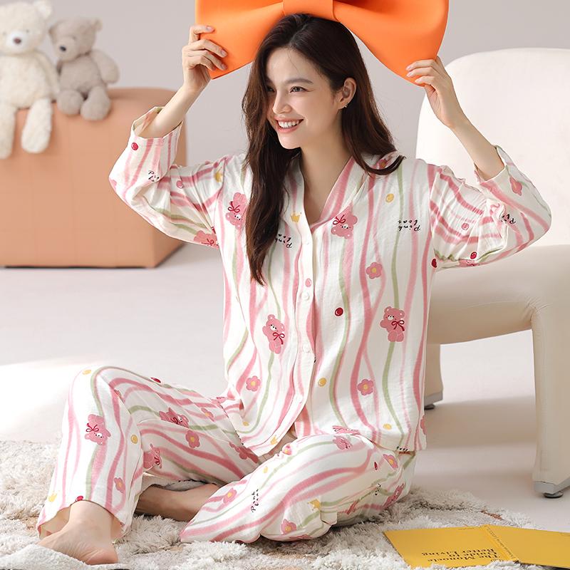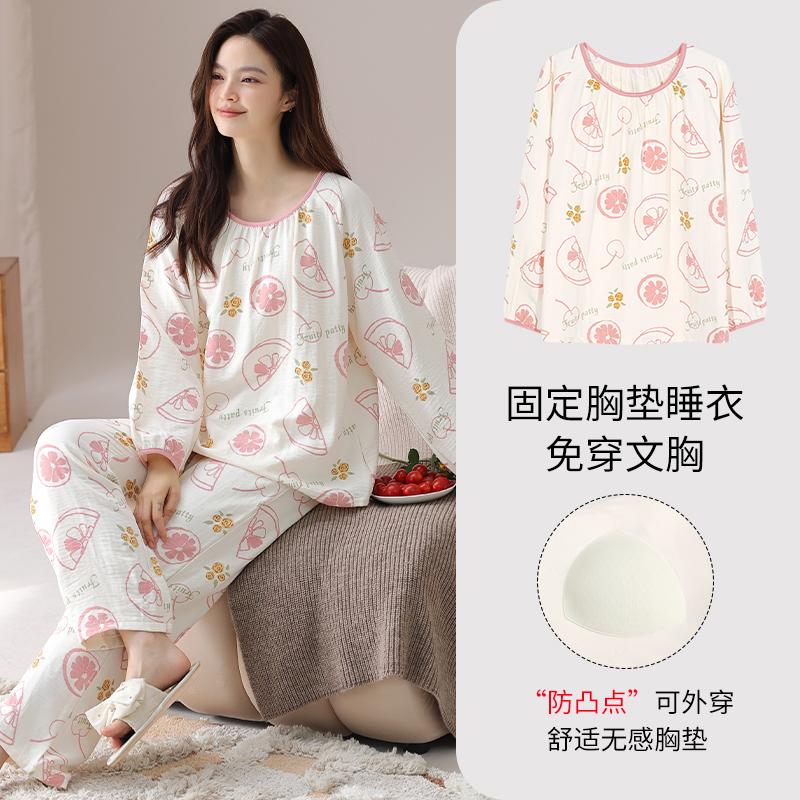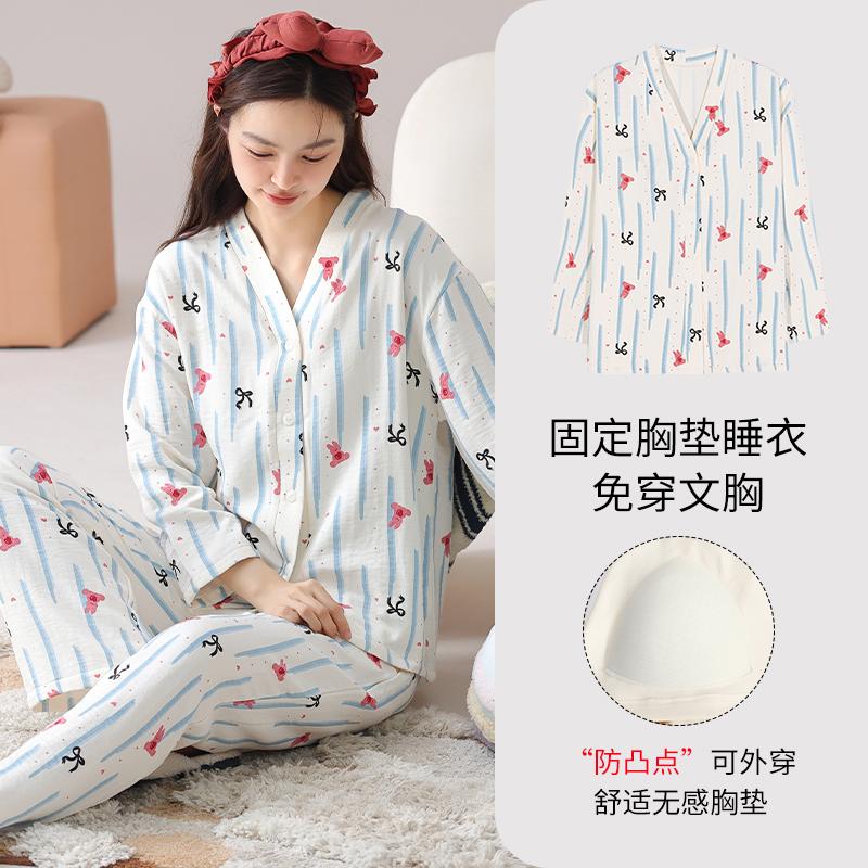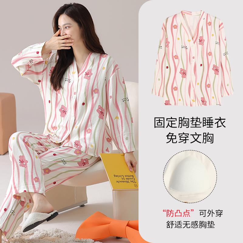 云朵棉睡衣女带胸垫春秋夏季长袖长裤甜美可爱少女宽松家居服套装