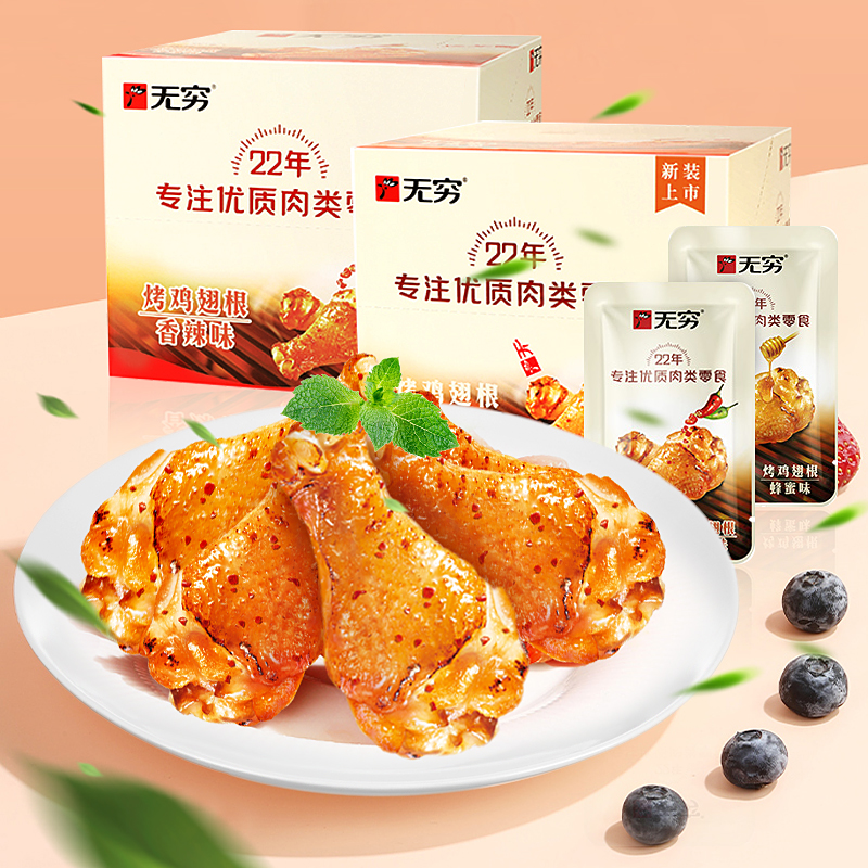 无穷烤鸡翅根小鸡腿即食夜宵充饥追剧解馋小零食休闲小吃香辣辣味