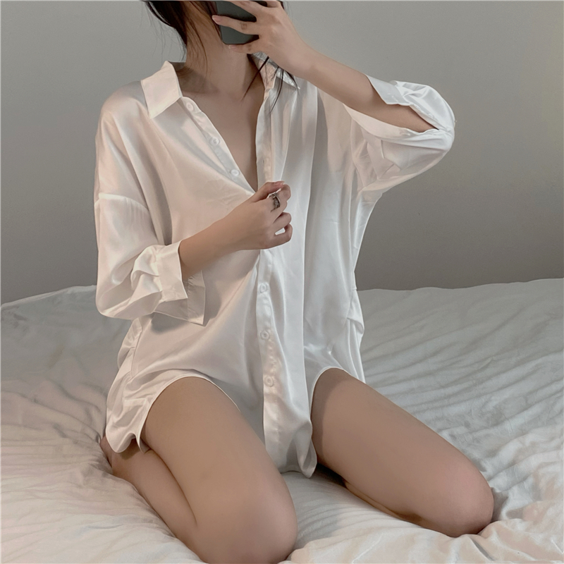 145/150矮个子睡衣冰丝大码男友风衬衫睡裙中长款家居服xxs加小码