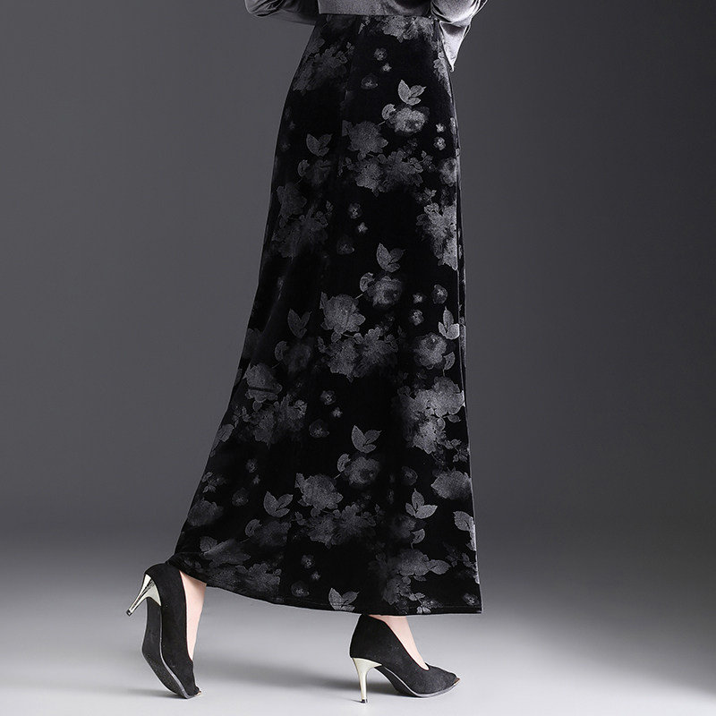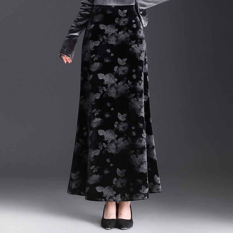 金丝绒印花鱼尾半身裙女2025年秋冬季新款高腰显瘦包臀长裙一步裙