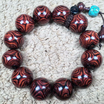 海南黄花梨对眼手串鬼脸佛珠紫油梨108颗满瘤疤蜘蛛纹女水波男2.0