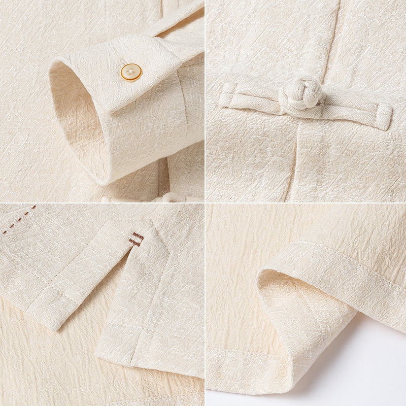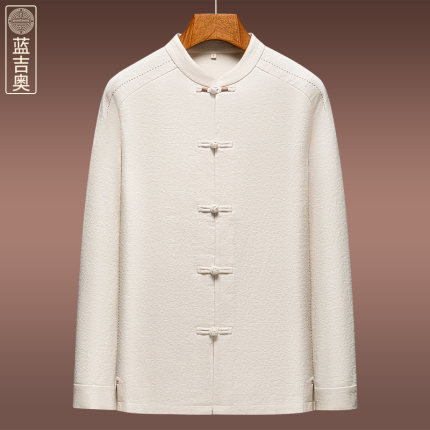 中青年男士立领盘扣衬衫春秋季长袖上衣中式爸爸中国风衬衣打底衫