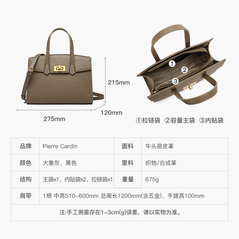 皮尔卡丹女包斜挎单肩真皮大容量铂金包妈妈包头层牛皮送女友礼物