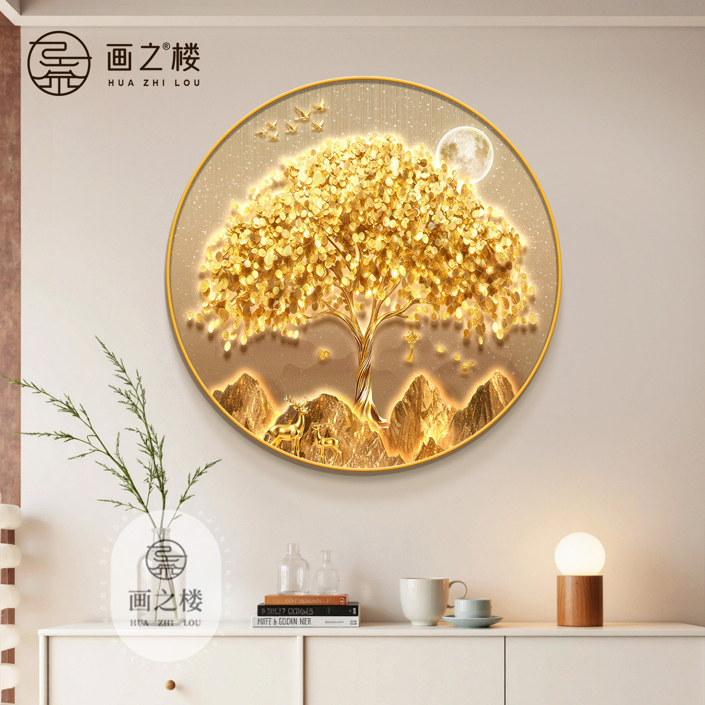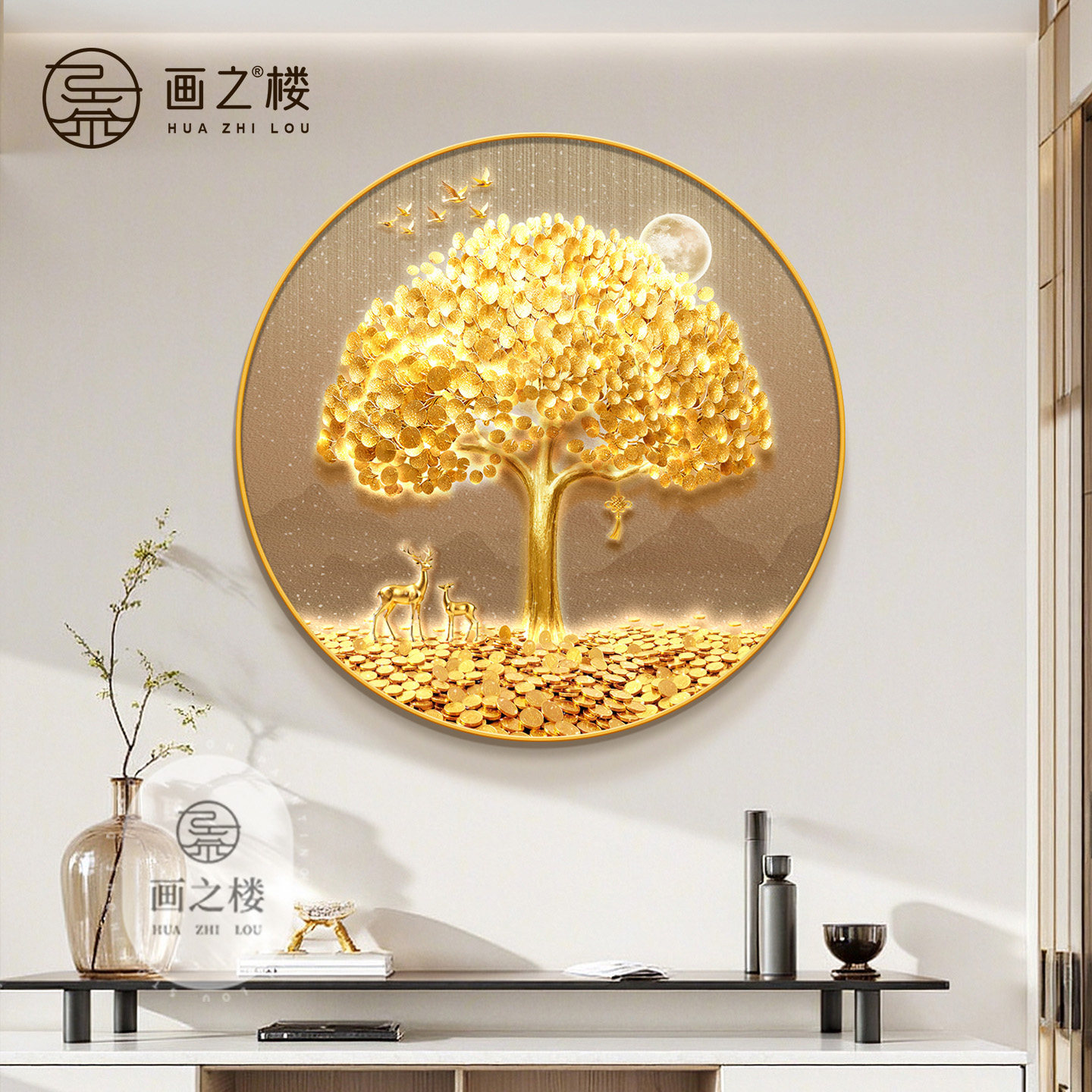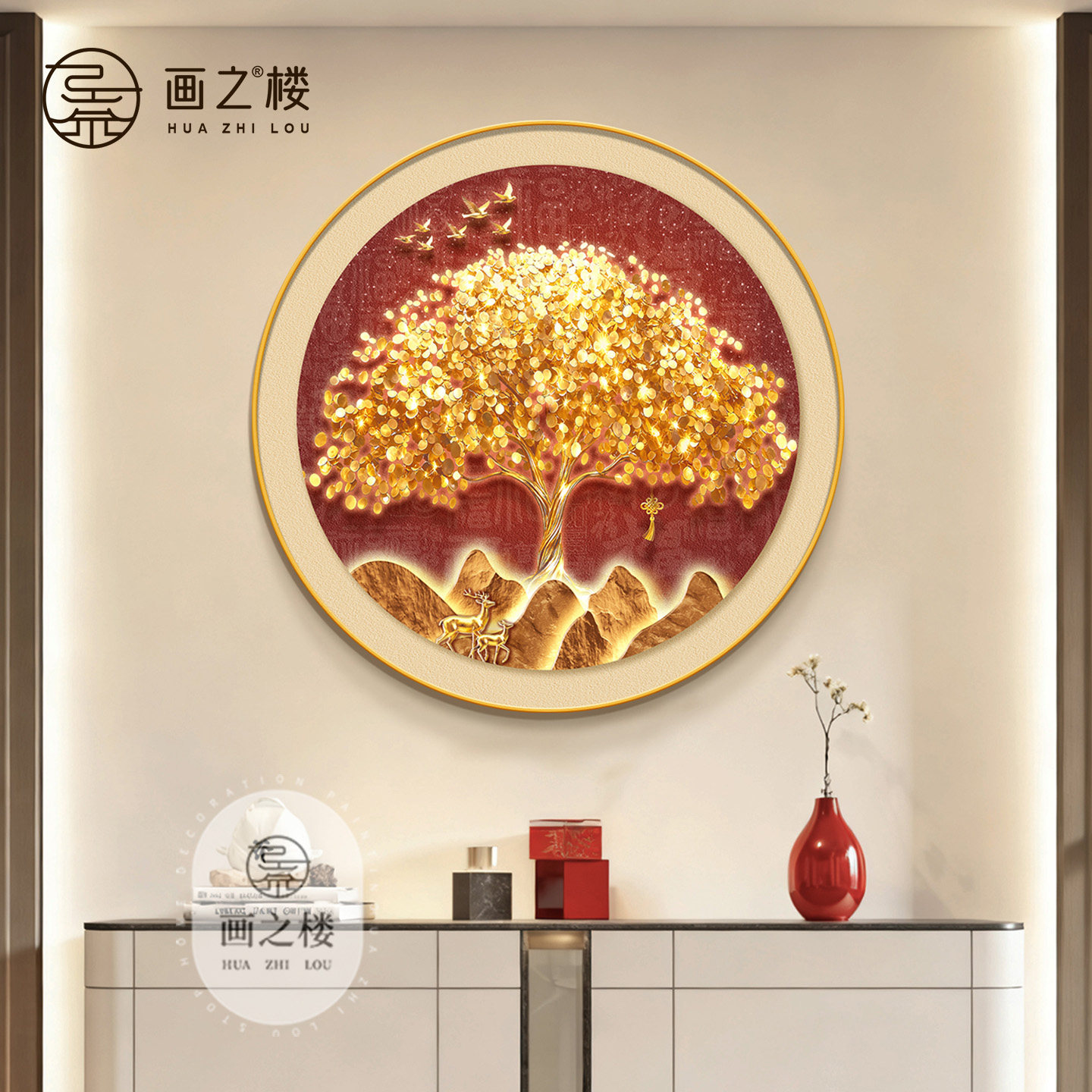 发财树斗柜装饰画轻奢招财树入户玄关挂画2026新款摇钱树聚财壁画