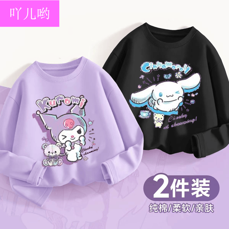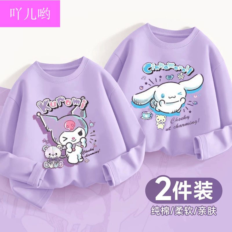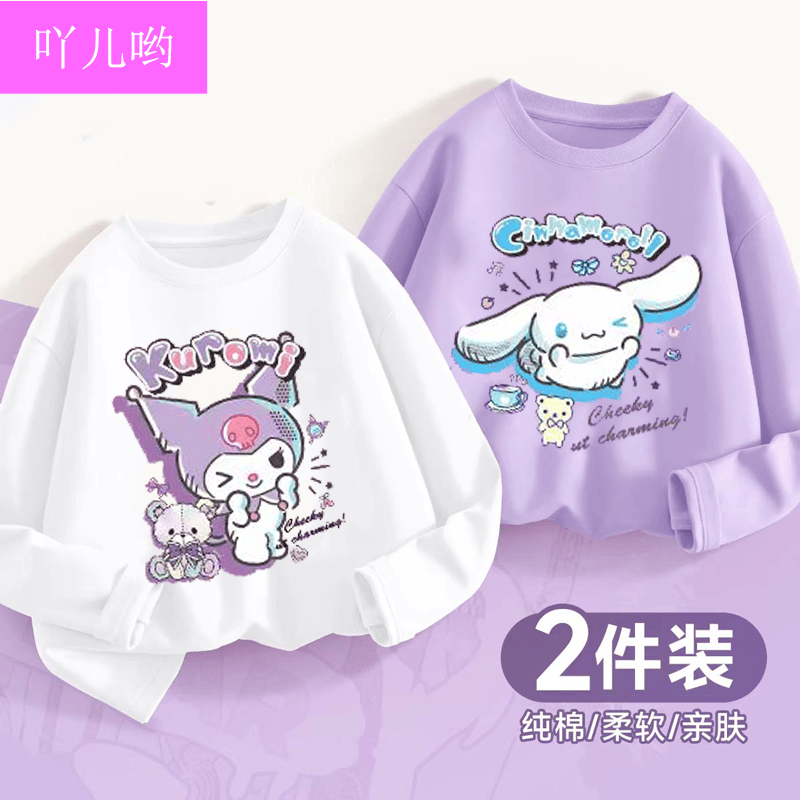 库洛米衣服女童纯棉长袖t恤2024春秋新款女孩洋气甜美上衣打底衫6