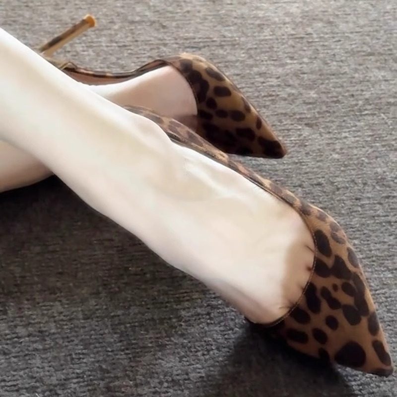 2025年早春新款侧空高跟鞋女豹纹绝美浅口尖头细跟性感御姐风单鞋
