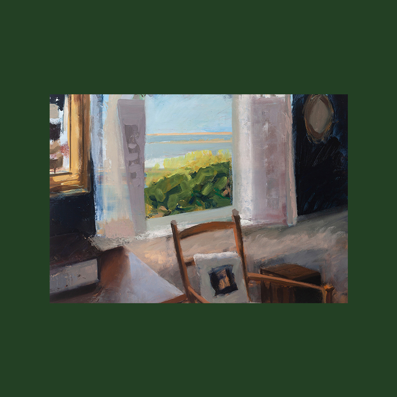 窗外暖阳 油画装饰画宿舍卧室墙面简约风景贴画画芯不干胶贴纸