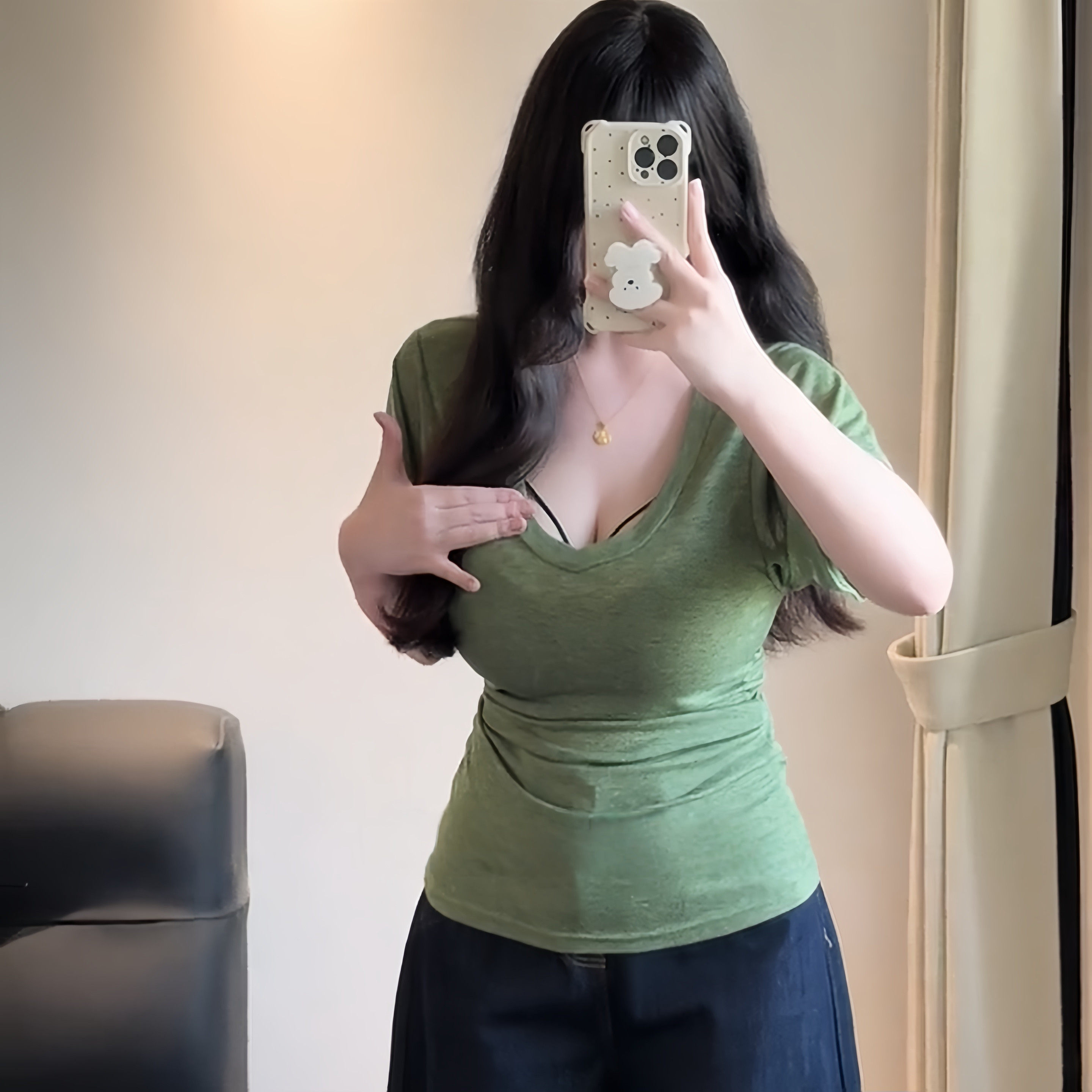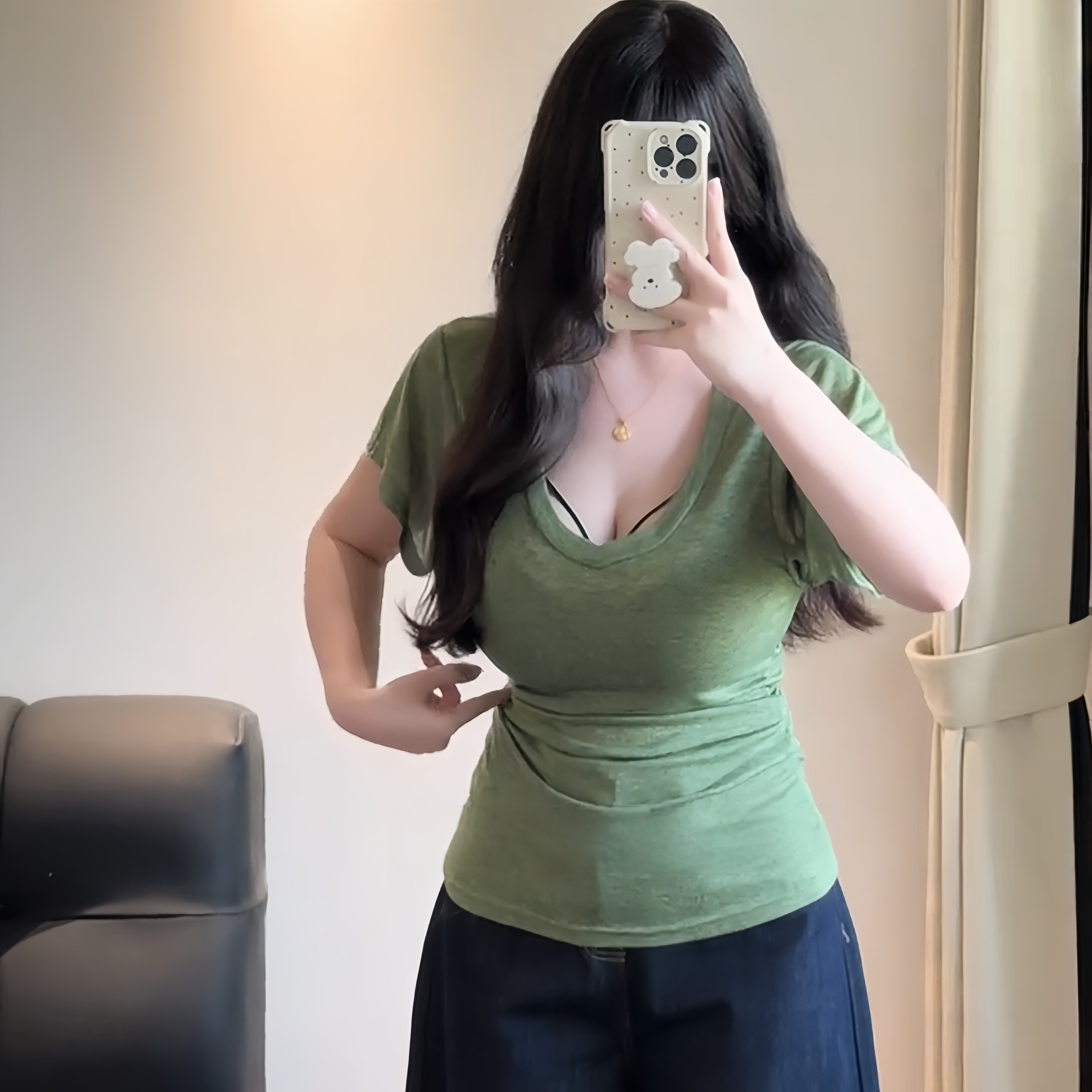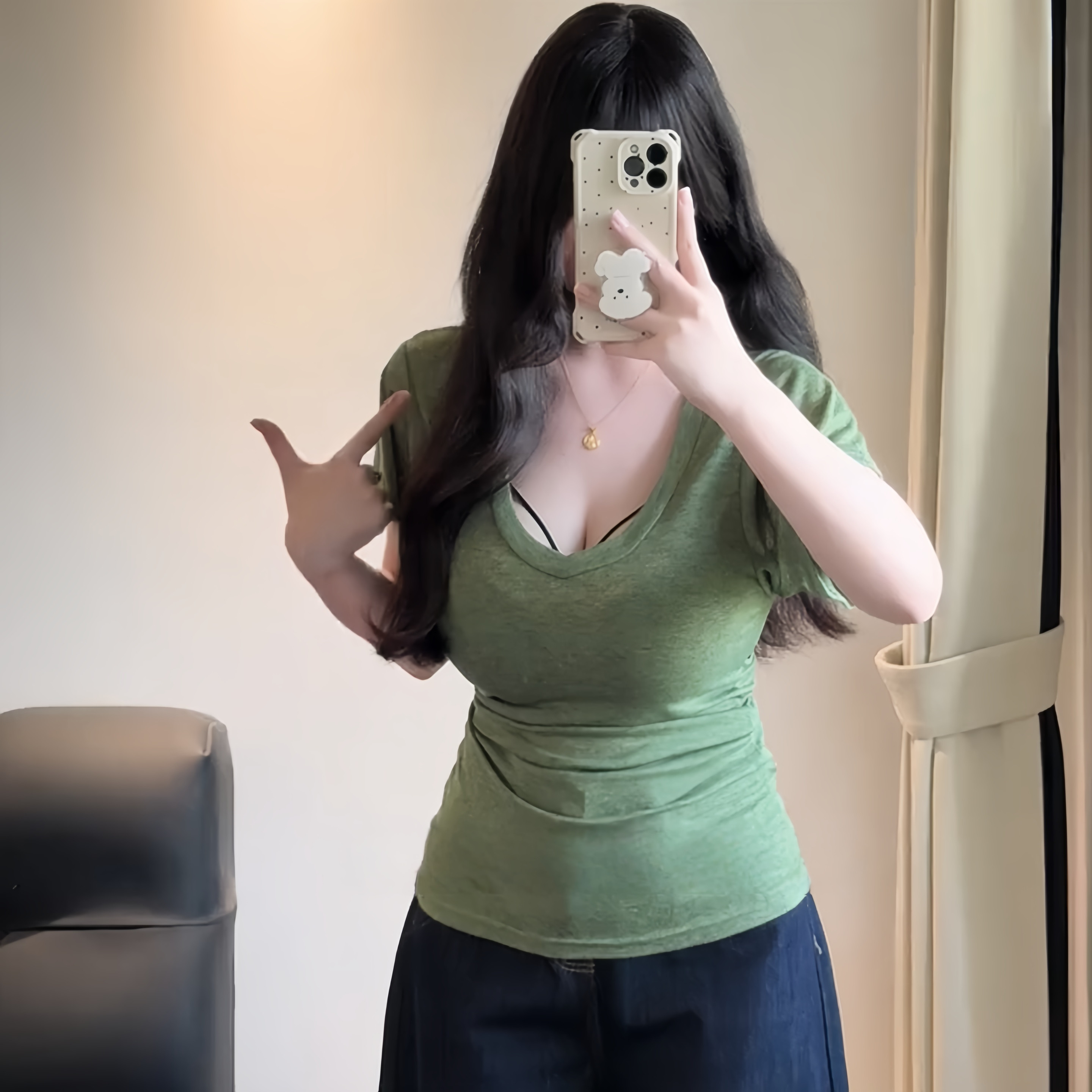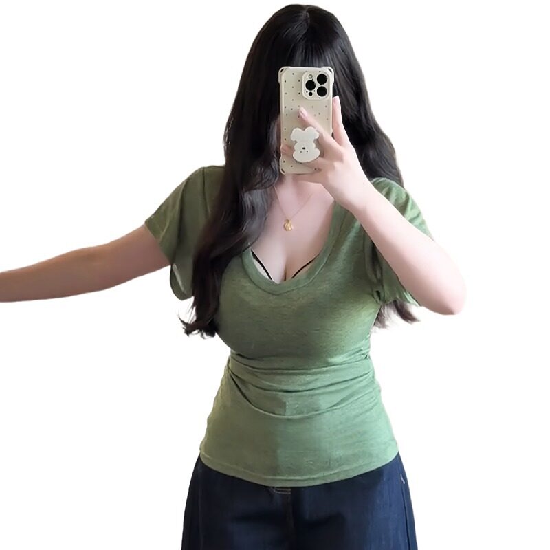 大码胖妹妹韩系纯欲v领蝙蝠袖正肩短袖t恤女夏季百搭收腰显瘦上衣