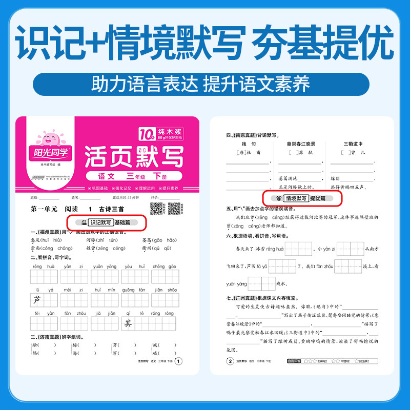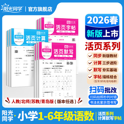 2026阳光同学活页默写计算一二三四五六年级上下册语文数学同步练习每日一练计算能手专项训练拼音词语字词句基础练试卷人教北师版