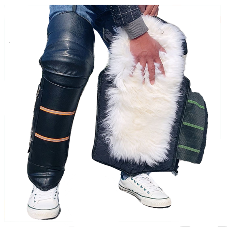 真皮纯羊毛护膝电瓶车摩托车护腿冬季男女士挡风膝盖保暖加厚加长