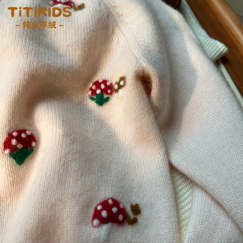 秋冬女童羊绒衫蘑菇刺绣开衫