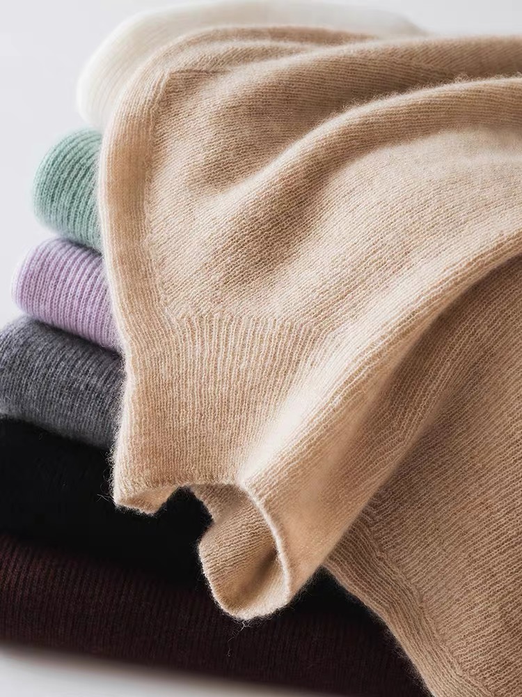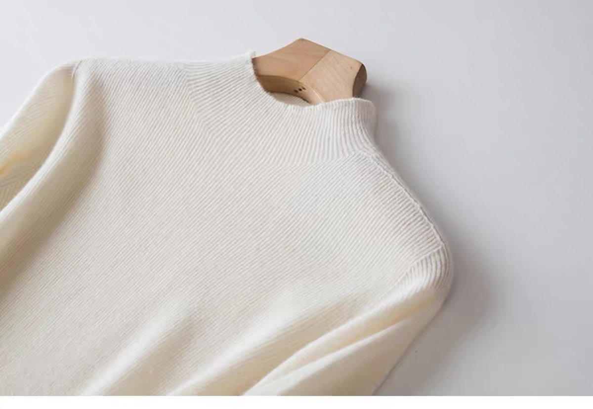 篙阶贵货山羊绒+桑蚕丝半高领坑条纯色长袖打底针织衫毛衣女秋冬