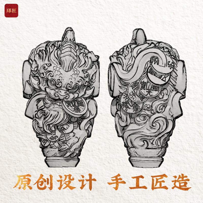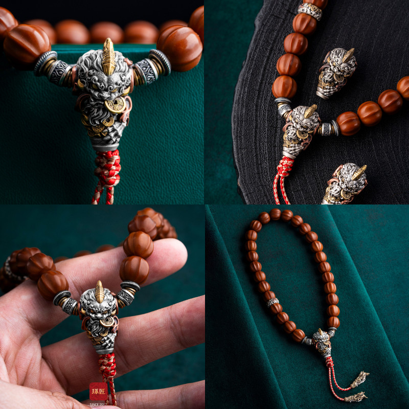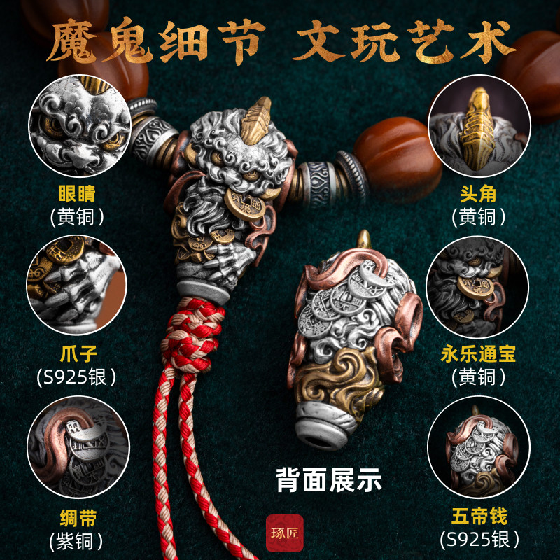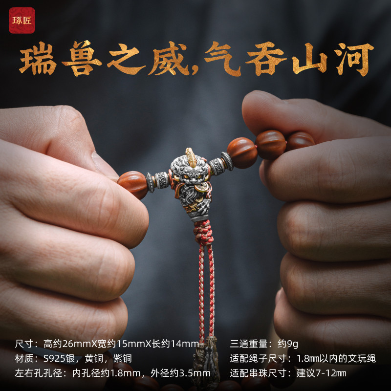 琢匠镇财貔貅三通套装小金刚文玩配饰银饰配件国风原创手串配珠