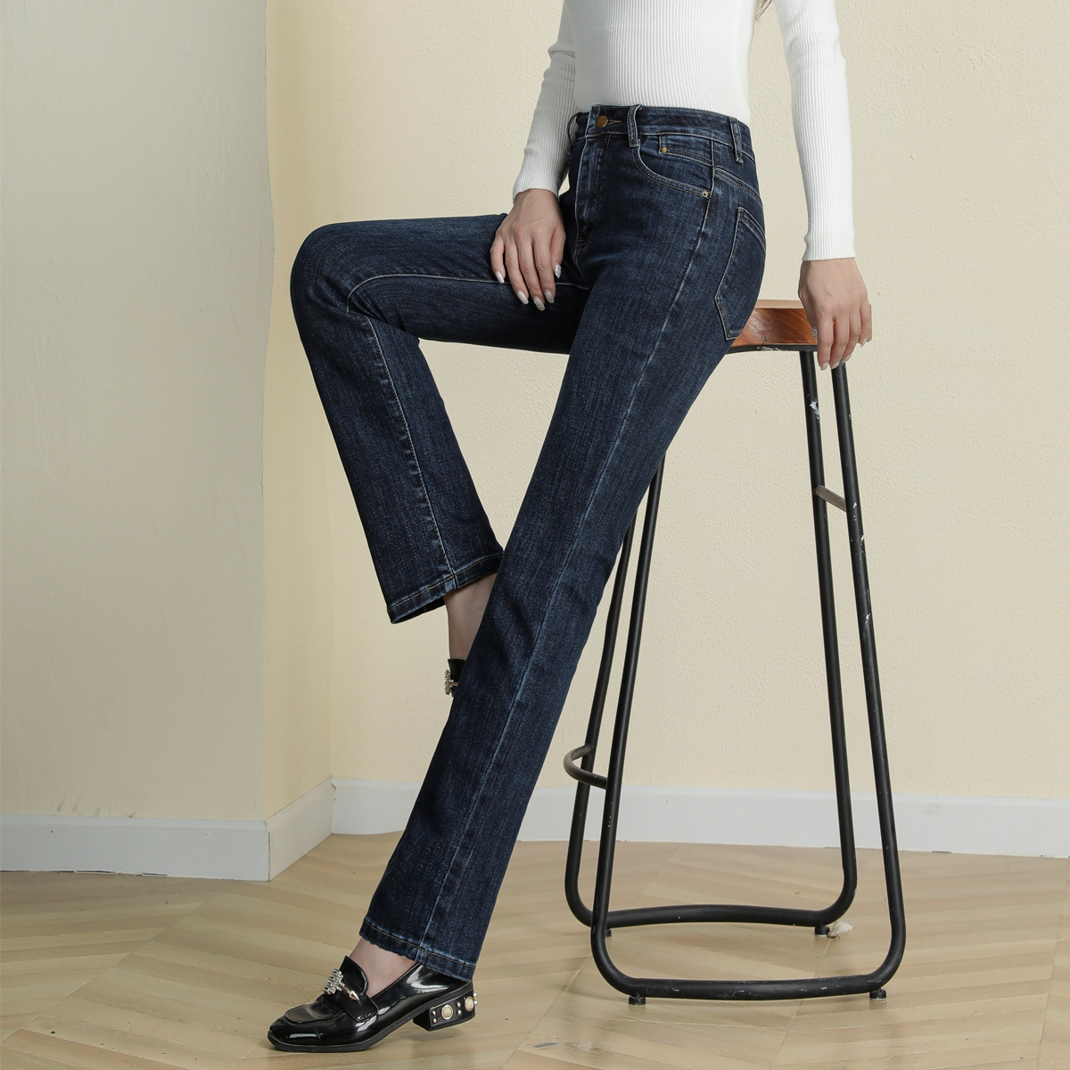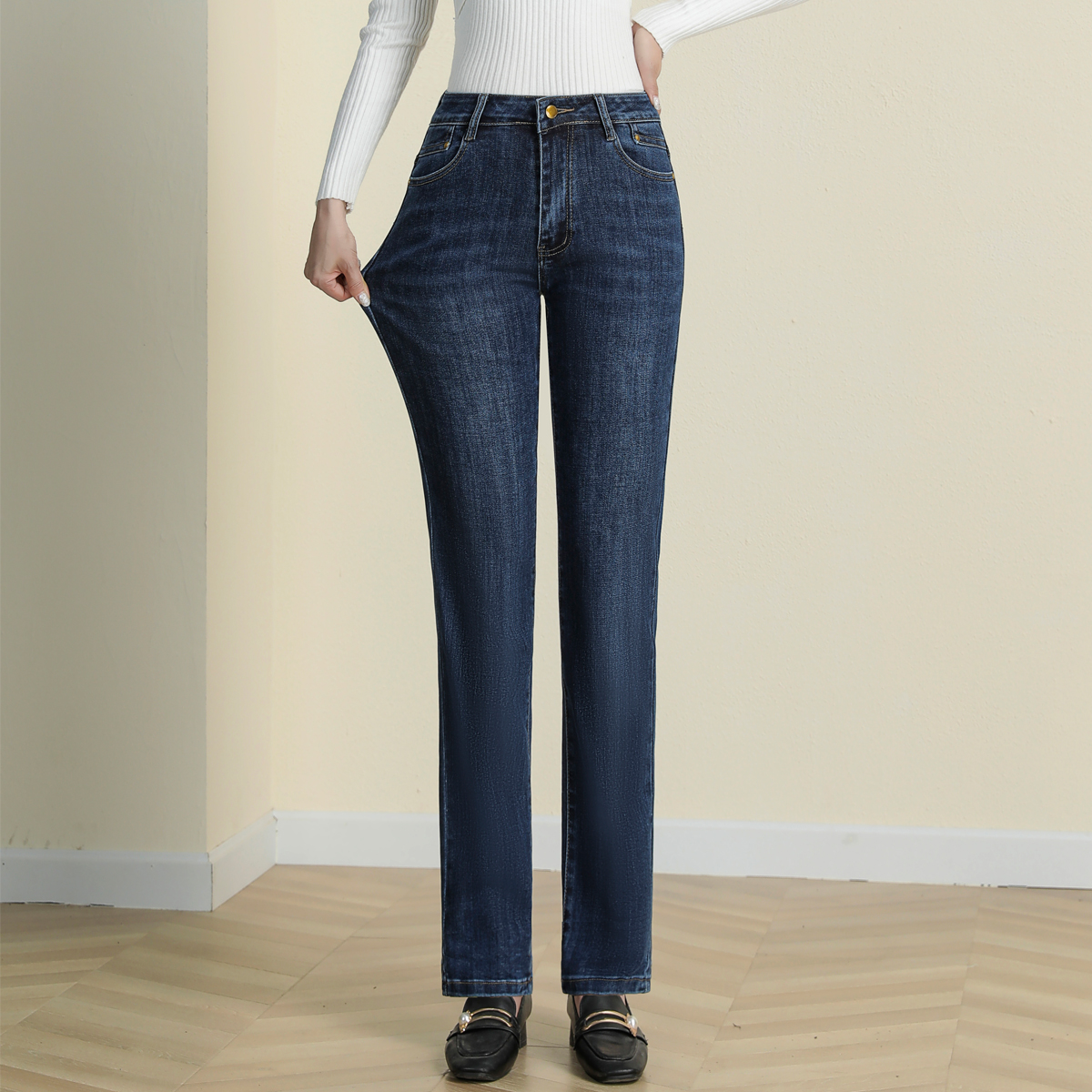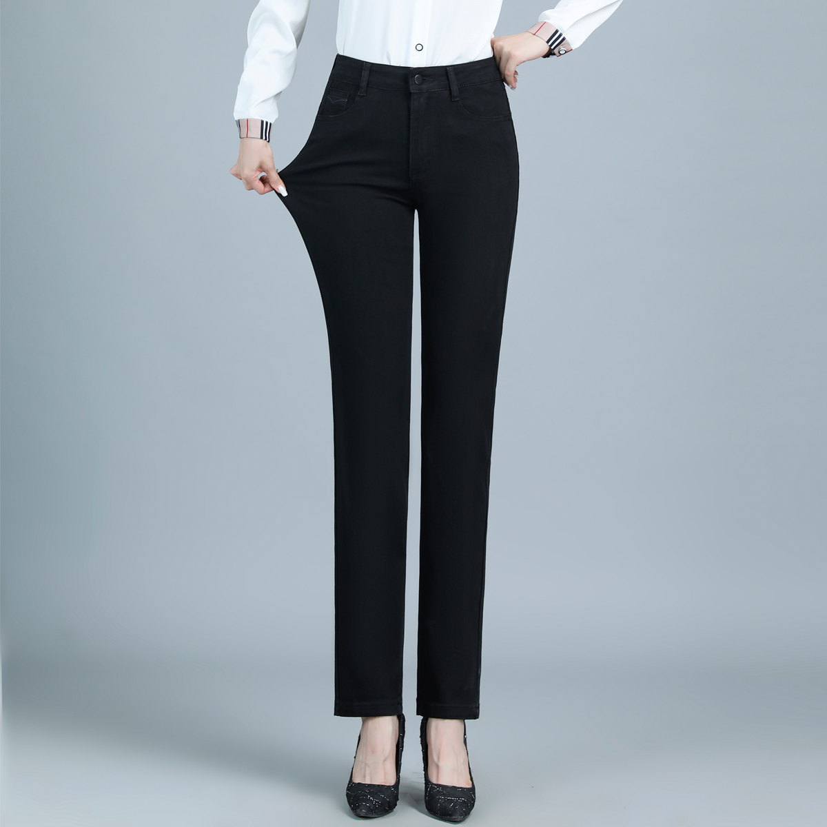 秋季新款牛仔裤女士高腰弹力显瘦中老年妈妈大码直筒裤子中年女裤