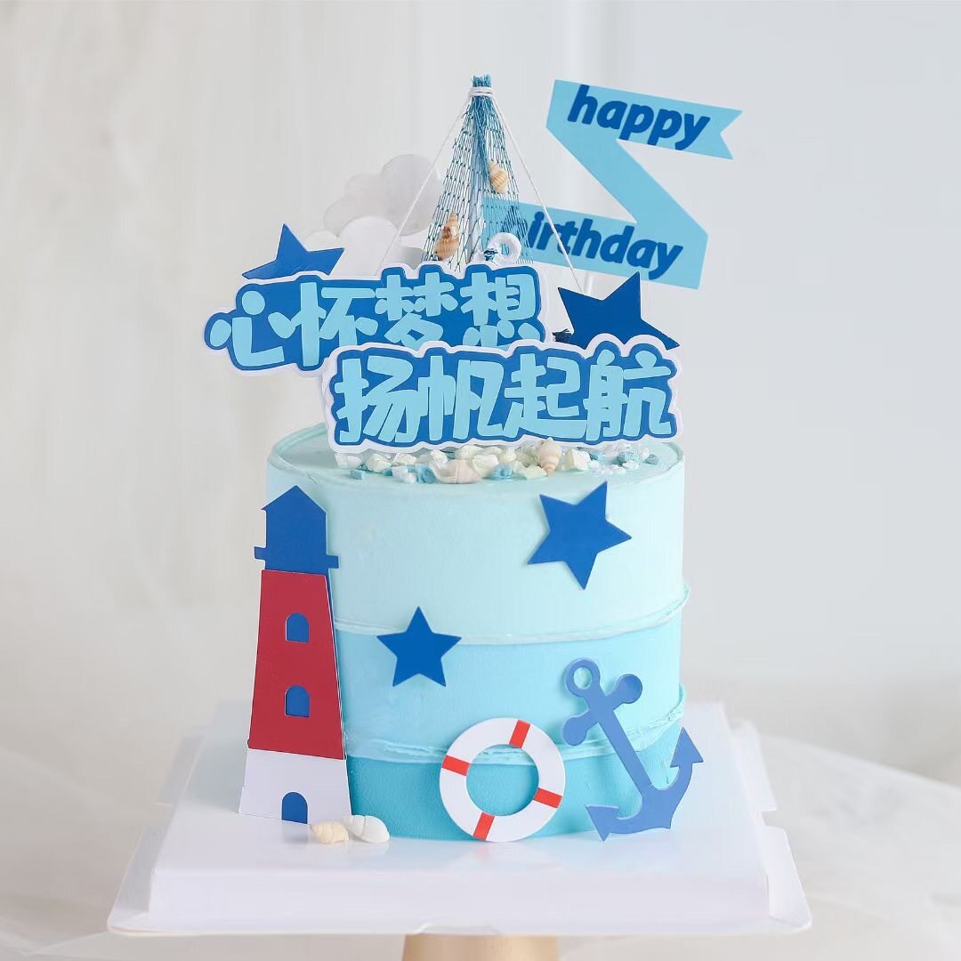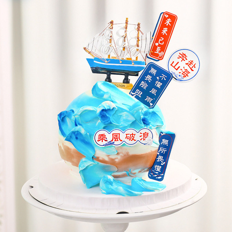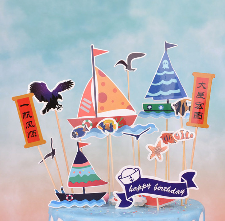 帆船蛋糕装饰摆件一帆风顺地中海风情景装扮沙滩贝壳海星模具插牌