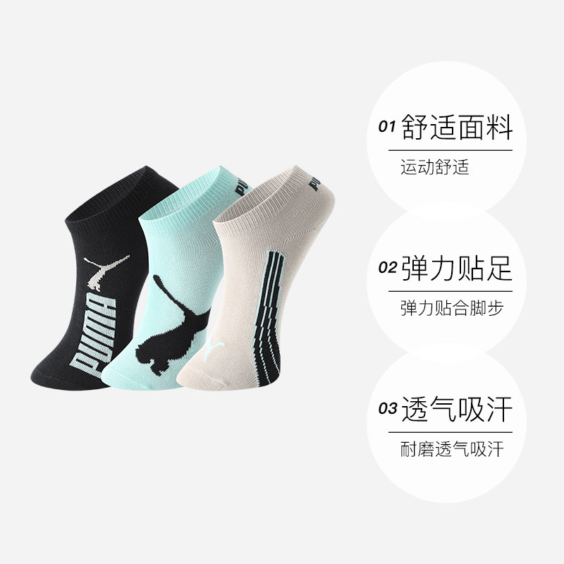 【自营】PUMA彪马袜子男女经典印花款时尚潮流透气吸汗短袜3双装