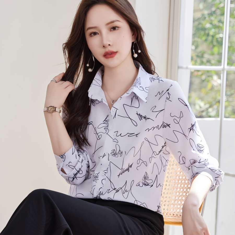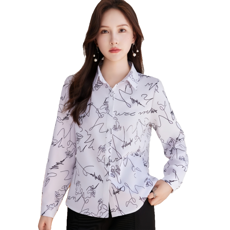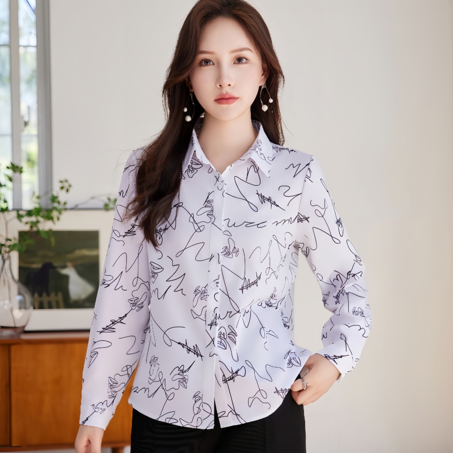 涂鸦条纹衬衫春秋装新款百搭宽松外穿上衣复古衬衣女长袖高级感