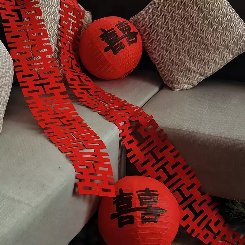 长条喜字贴结婚专用婚房布置连体装饰婚礼新房客厅背景墙连串囍字