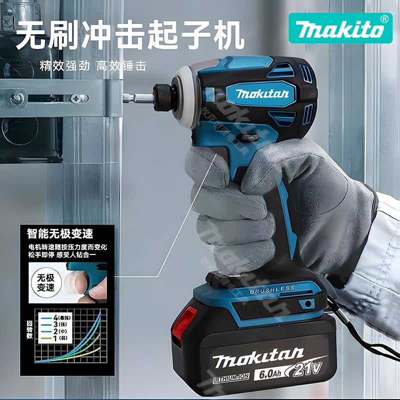 牧田款无刷锂电冲击起子机家用电动螺丝刀电钻充电式螺丝批电起子
