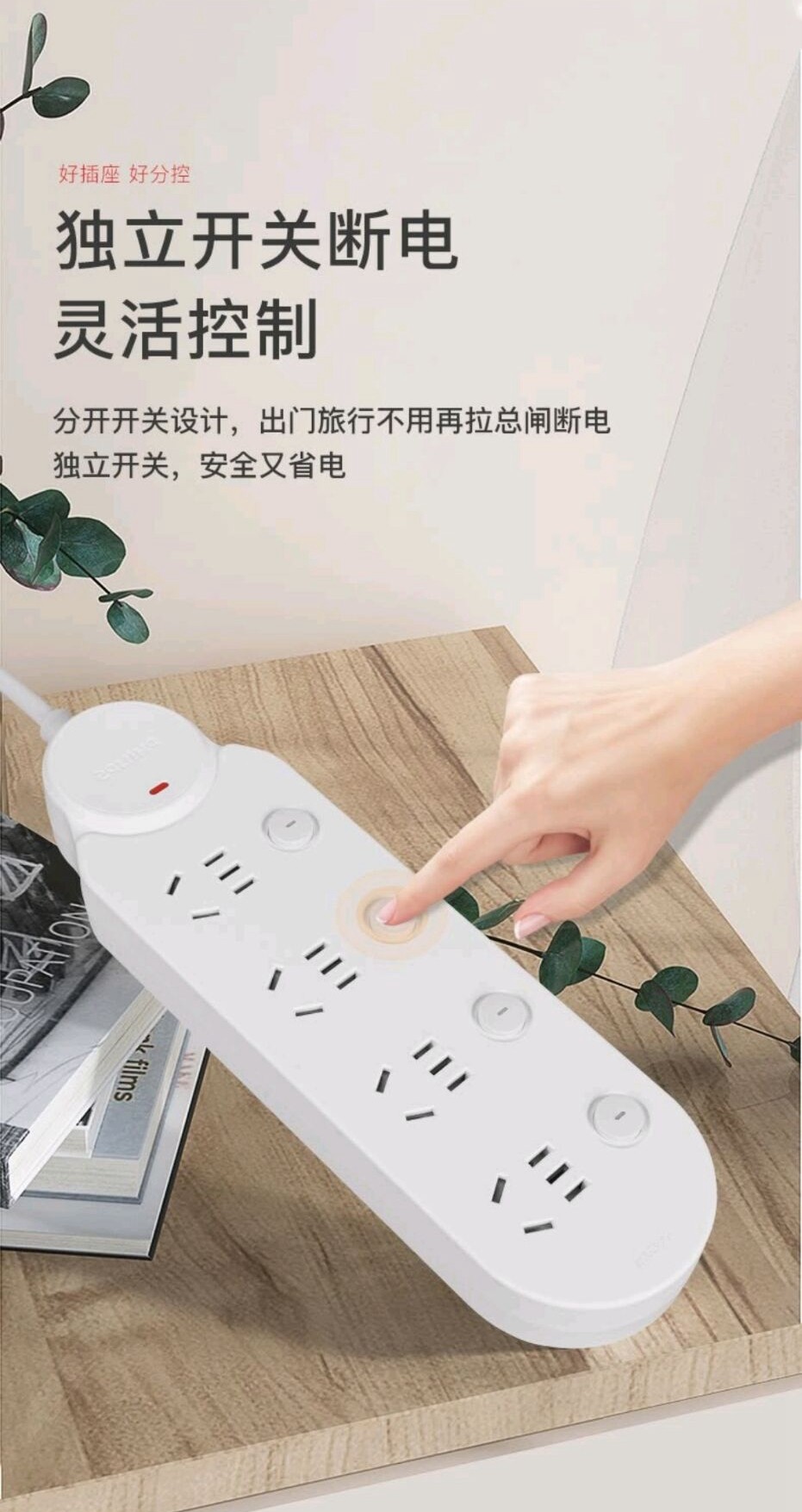 飞利浦I系列新国标分控插座防过载保护/加粗线芯 插排/接线板