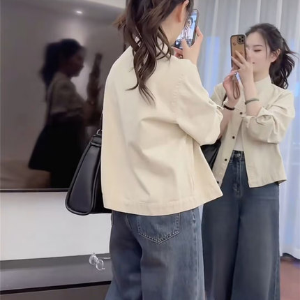 小个子短款衬衫外套女薄款2025春季新款韩版休闲 宽松百搭夹克上