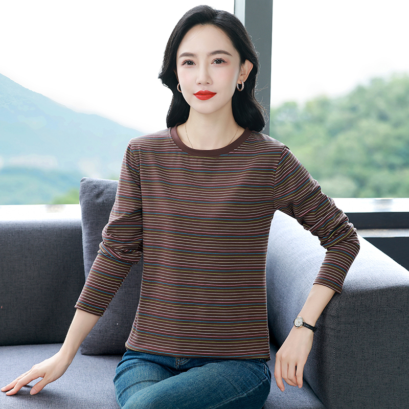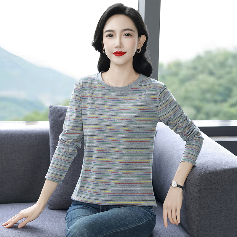 纯棉条纹长袖t恤女2025新款早秋宽松显瘦打底衫时尚百搭圆领上衣