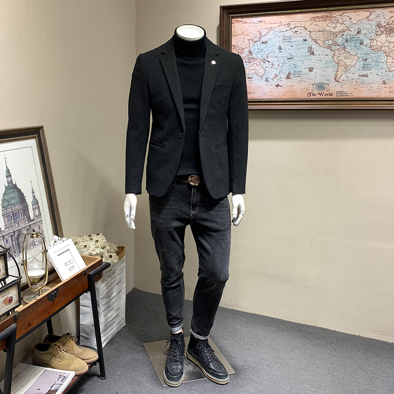 春秋冬季毛呢西装外套男士韩版修身呢子小西服商务休闲简约单西男