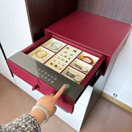 皮质智能指纹抽屉式保险柜家用小型防盗保险箱全钢衣柜办公保管箱