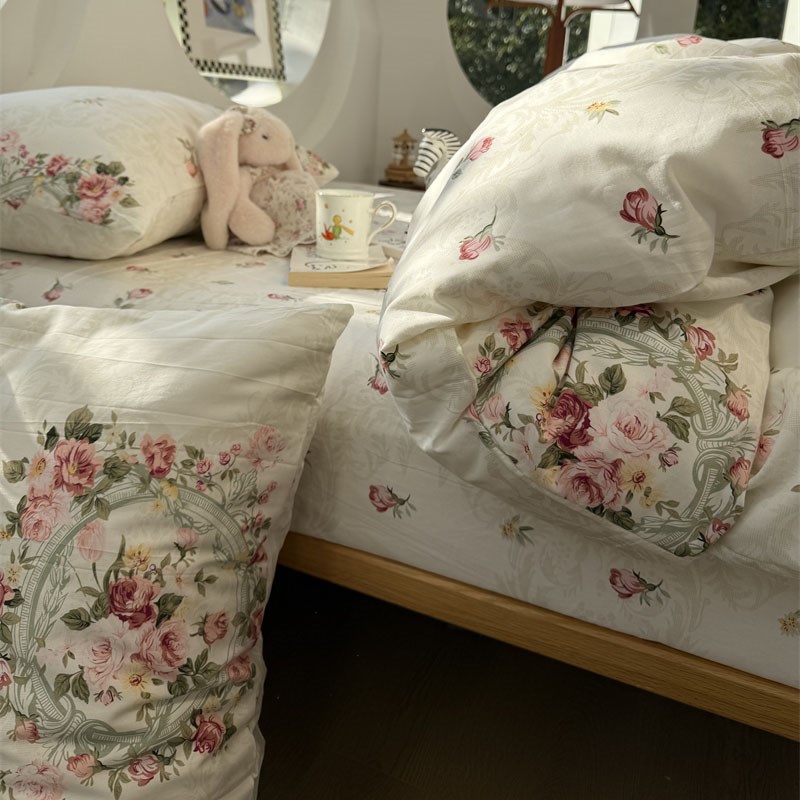 田园少女心粉色碎花床上四件套全棉1.5m1.8米被套床单三件套