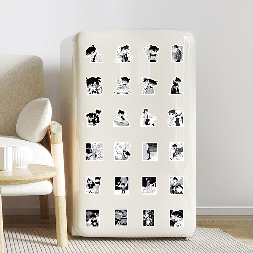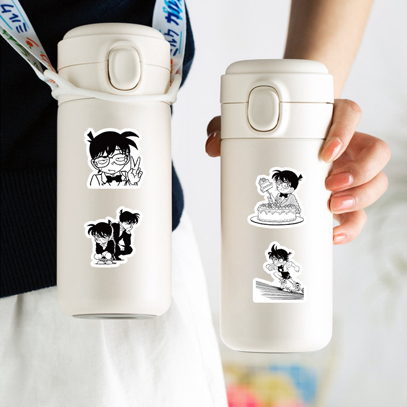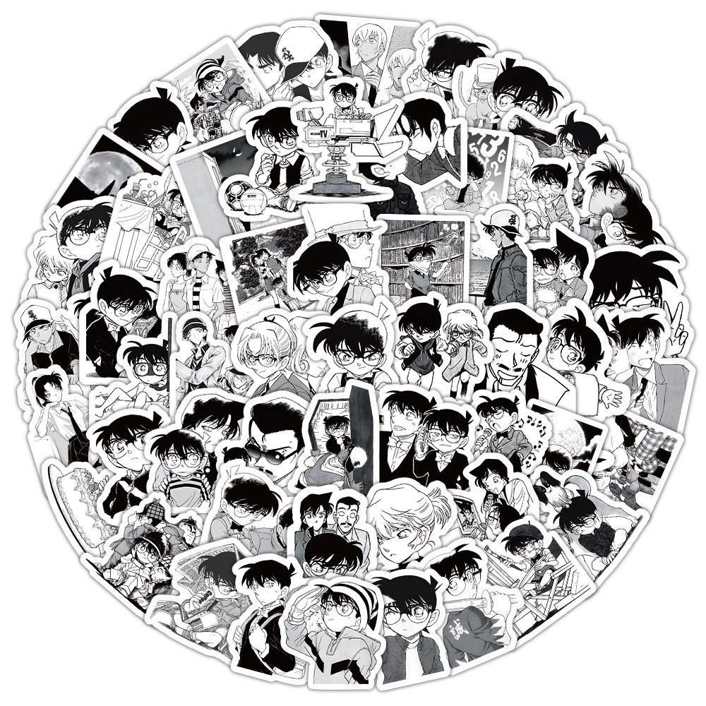 100张柯南贴纸 黑白动漫漫画周边手账本平板水杯桌面装饰防水贴画