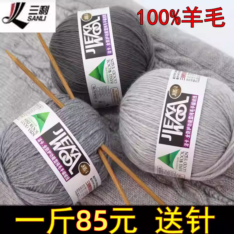 三利毛线100%纯羊毛线团粗线手编毛衣线中粗全毛毛线围巾线外套线