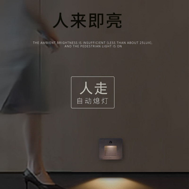 明装地脚灯人体感应长亮防水踏步灯磁吸楼梯过道走廊户外LED灯