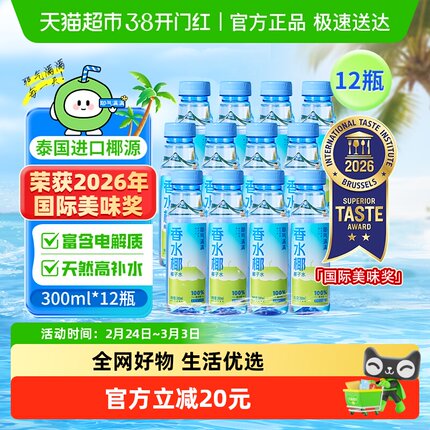 耶气满满香水椰100%椰子水300ml*12瓶天然电解质椰青果汁饮料