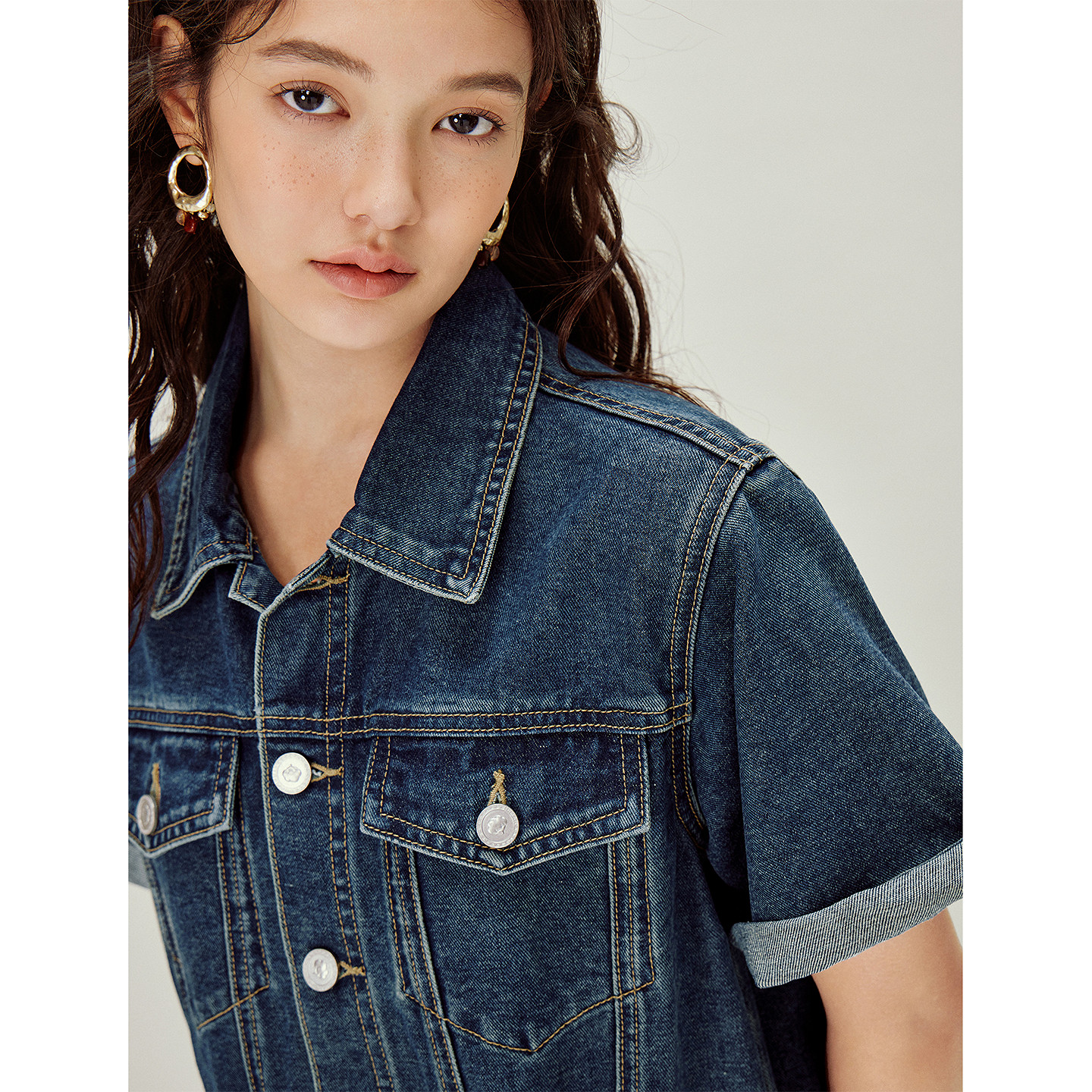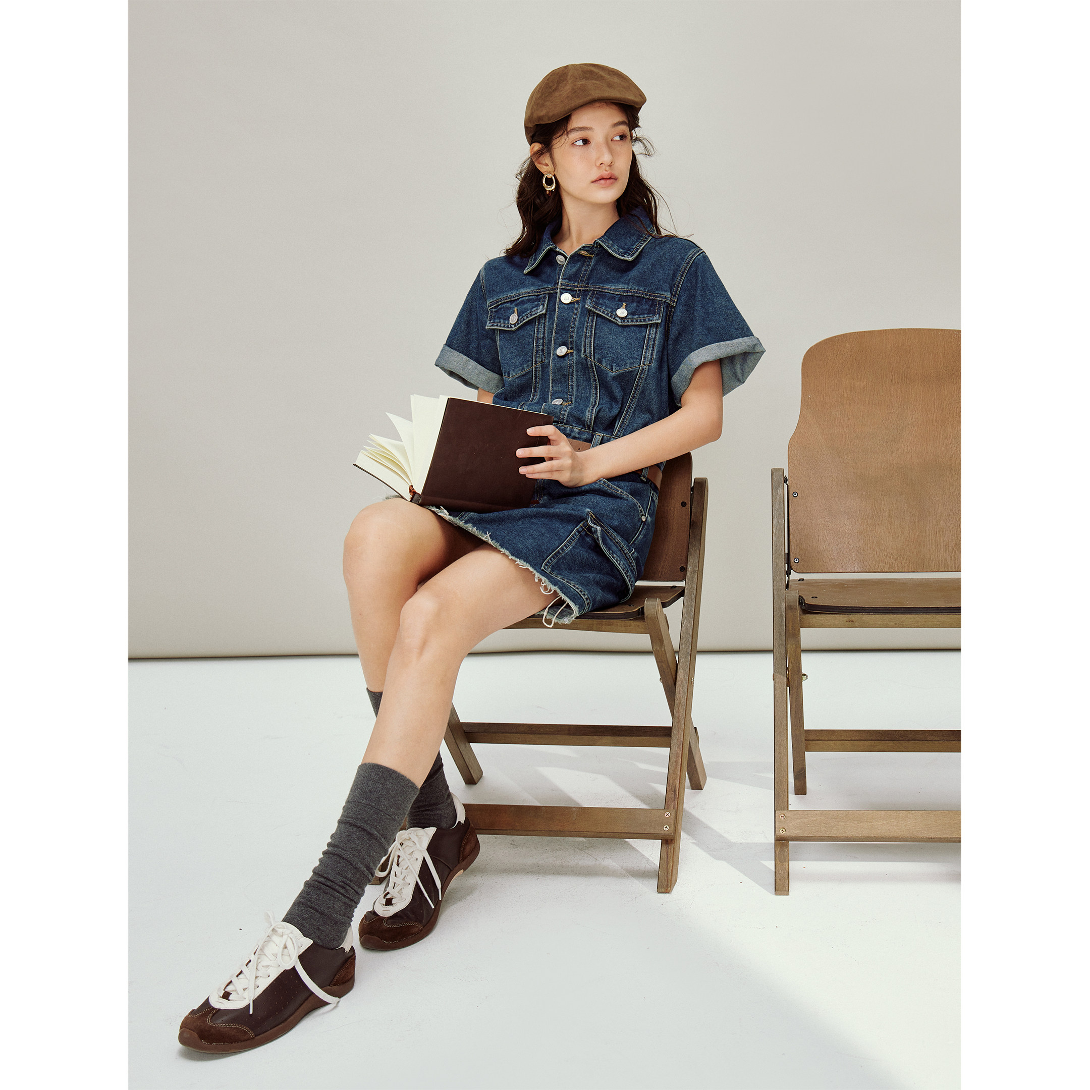 茵曼复古水洗做旧工装牛仔连衣裙2026春季女装新款短袖包臀短裙子