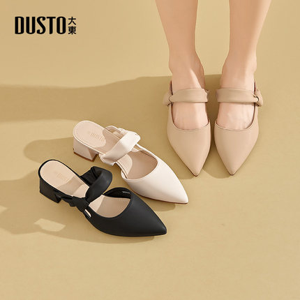 大东穆勒鞋女鞋2025夏季新款粗跟中跟套脚蝴蝶结外穿半拖鞋X0039