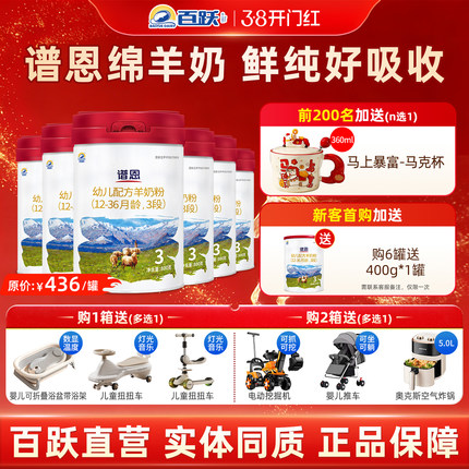 百跃【官方旗舰店】谱恩3段12-36月龄婴幼儿配方绵羊奶粉800g*6罐