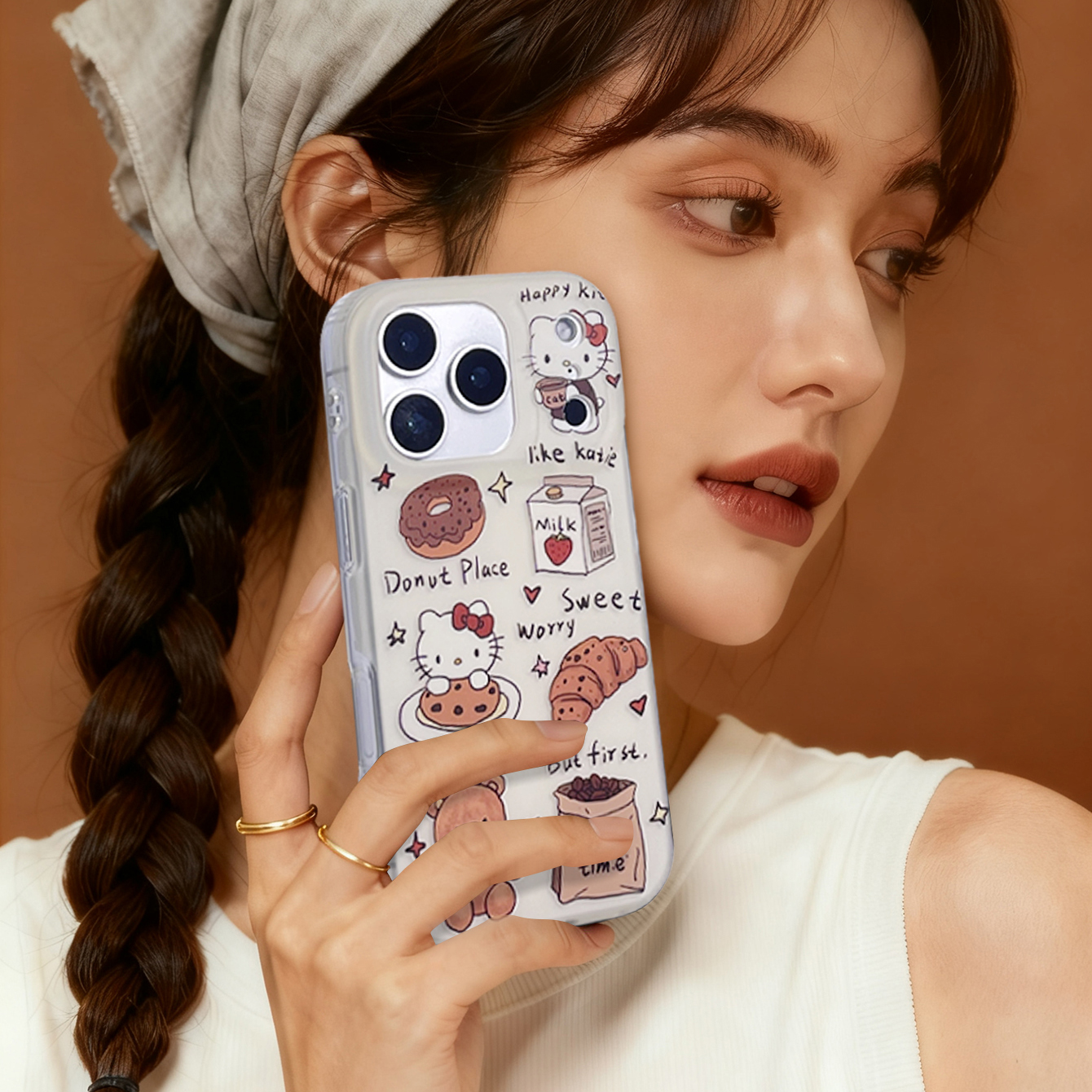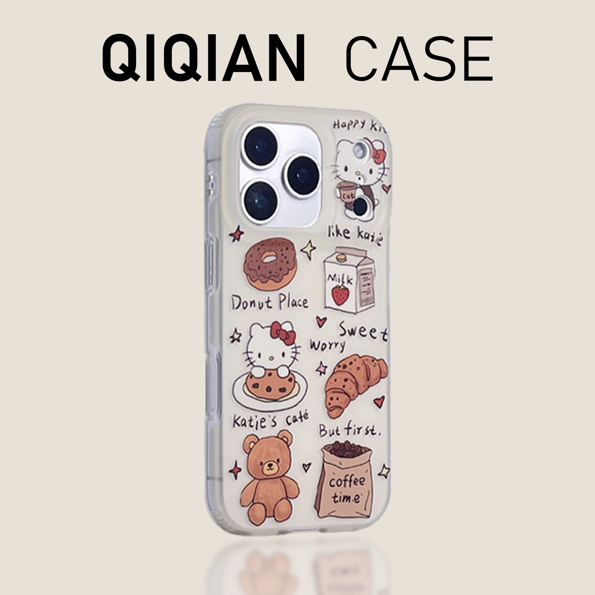 启乾 可爱凯蒂猫小熊牛角包甜品腕带iPhone17/16手机壳适用苹果15/14promax硬壳13链条挂绳卡通少女心新款ins